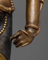 Our Standing Compassion Deity Chenrezig Statue, skillfully made from copper and decorated with layers of 24K gold gilding, transports you to a world of amazing craftsmanship. A sense of divine grace and compassion exudes from this statue, which is 15.7 inches tall with a 5.9 inch base. Master artisans have skillfully sculpted every detail, demonstrating their passion and talent, from the lovely face features to the flowing robes. With great care and perfection, this monument represents the radiant compassion of Chenrezig and is a tangible representation of enlightenment and compassion. This sculpture inspires meditation and contemplation on the infinite knowledge and compassion of Chenrezig with its calm face and caring gaze.