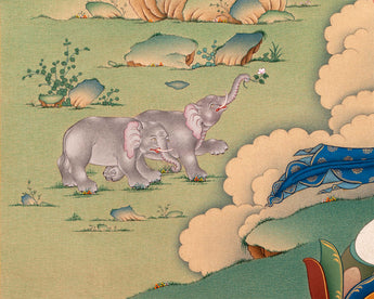 As requested for consecrations/blessings, we can take thangka to Monasteries/Rinpoches from nearby Boudha Stupa. We kindly ask you to offer $50 for the monasteries for blessings/consecration service.