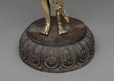Padmapani Copper Sculpture with Wooden Lotus Base - Symbol of Loving-Kindness