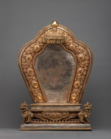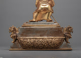 Behold the divine artistry of our Standing Tantric Guru Rinpoche Statue, which has been masterfully crafted to perfection. With its 24K gold gilding and copper construction, this statue exudes a sense of spiritual elegance and grandeur. The minute details, which are accentuated by acrylic paints, demonstrate our artists' skill and dedication. Guru Rinpoche's compassion and ageless wisdom are reflected in every brushstroke and intricate craftsmanship. The statue's celestial attractiveness is enhanced by its finely carved halo and delicately created throne, which is embellished with four snow lions, which are symbolic of auspiciousness.s
