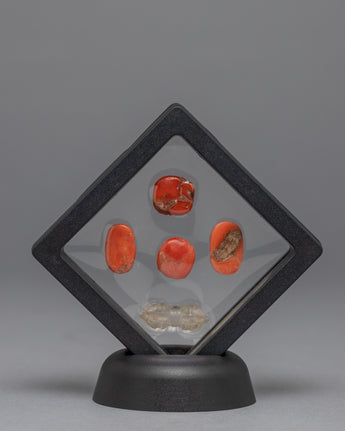 The Statue and Vajra Floating Frames are stunning pieces of art. The frames are made of vacuum glass, which gives the impression that the objects are floating inside. The deity's statue is meticulously carved from coral, with intricate details and precision. The vajra, on the other hand, is made of crystal stone and adds an elegant touch to the overall design. This set is an eye-catching addition to any space, as well as having significant cultural and spiritual significance.