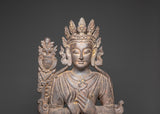 Maitreya Buddha is a bodhisattva, or enlightened being, regarded as the future Buddha in many Mahayana Buddhist traditions. According to Buddhist belief, Maitreya will appear on earth to end suffering and spread Buddhist teachings. Maitreya is often depicted sitting on a lotus base with a serene expression, symbolizing his compassion and wisdom. He is also sometimes depicted holding a vase, symbolizing his role as a teacher and dispenser of Buddhist teachings. Maitreya is considered a beloved and revered figure in the Buddhist tradition, inspiring devotion and respect among practitioners.