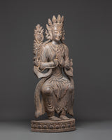 This majestic wooden statue of Future Buddha Maitreya represents the promise of compassion, hope, and enlightenment. Standing 128cm tall, 53cm wide, and weighing 17.75kg, this enormous handcrafted work is suitable for Buddhist temples, shrines, and meditation rooms. Maitreya, the Future Buddha, is revered as the embodiment of universal loving-kindness who will appear to guide beings to liberation. This magnificent monument acts as both a spiritual figure and an inspiration to practitioners.