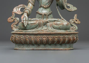 This exquisite Statue of Healing Goddess White Tara embodies the divine essence of compassion, purity, and serenity. Handcrafted from a copper body, the statue captures White Tara in her meditative posture, radiating peace and gentle strength. Her right hand is extended in the gesture of generosity, while her left hand gracefully holds a blooming lotus flower—symbolizing spiritual awakening and purity that transcends suffering. Every curve and detail reflects meticulous craftsmanship inspired by ancient Tibetan Buddhist art, making this piece a radiant centerpiece for your altar or sacred space.