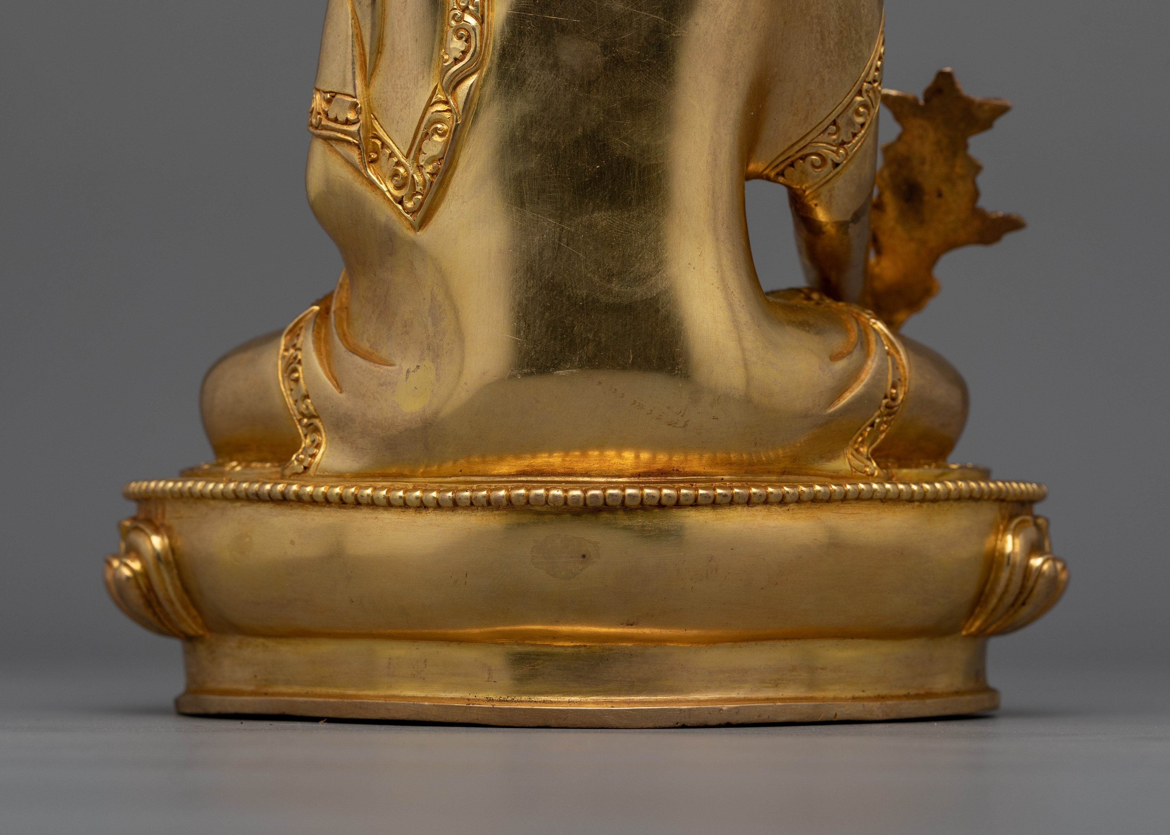 In Tibetan Buddhism, the Medicine Buddha is revered as a potent source of healing energy and protection against illness. Prayers to Bhaisajyaguru are thought to help with both bodily and spiritual healing, making this statue an important addition to any Buddhist altar or holy space for anyone seeking health and well-being.