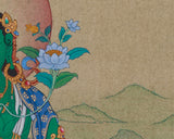Green Tara, also known as the Swift Liberator, is known for her swift assistance in removing obstacles and aiding those in need. It captures her powerful presence, making it a significant piece for meditation, contemplation, and spiritual practice. The vivid colors and intricate details represent her deep wisdom and her readiness to act. This thangka is perfect for those seeking spiritual protection, wisdom, and swift guidance from her and will enhance any sacred space.