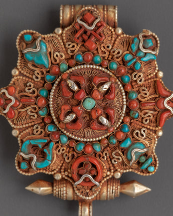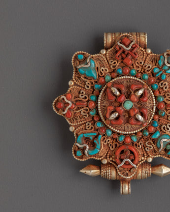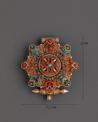 Handcrafted Symbol of Protection Ghau Box Locket | Spiritual Amulet with Coral & Turquoise Stones