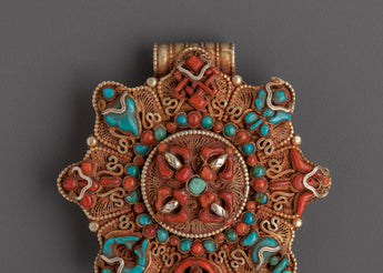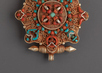 The Symbol of Protection Ghau Box Locket combines meaningful spirituality with elegant design. Crafted from gold-plated silver, this 9 cm by 7.5 cm locket features carefully set coral and turquoise stones, each valued for their protective and healing qualities. Its size makes it a striking statement piece while serving as a personal talisman to shield you from negative energies. Whether worn daily or kept close during important moments, this locket offers both style and spiritual strength, making it an essential accessory for anyone seeking protection and peace of mind.