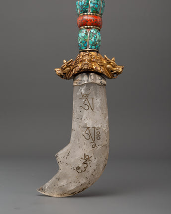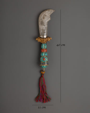 In Tantric Buddhism, the knife is regarded as a weapon for change and purification. It is traditionally utilized in ceremonial cleansing and the symbolic severing of evil forces. Whether displayed as a collectible, set on an altar, or used in spiritual ceremonies, this sacred sword exudes excellent energy and craftsmanship. This knife with mantra carving is ideal for people who value Dharma teachings, Buddhist symbols, or esoteric ceremonies. It combines old heritage with timeless devotion.