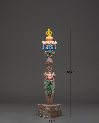 The Tantric Phurba Ritual Dagger is a finely crafted spiritual instrument essential for Tibetan Buddhist practices focused on protection and meditation. Standing 30cm tall and 9cm wide, it is forged from sturdy iron and enhanced with vibrant acrylic colors, combining with striking visual appeal. This sacred dagger symbolizes the power to dispel negative energies and invite divine protection, making it a vital tool for both personal meditation and ceremonial rituals. Incorporating the Phurba into your spiritual routine can deepen your connection to ancient traditions and strengthen your inner focus and resilience.