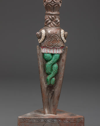 The Tantric Phurba Ritual Dagger functions as both a practical instrument for Tantric ceremonies and a potent spiritual symbol. Incorporating this sacred dagger into your rituals invites protection, wisdom, and the transformation of energy. Its presence enhances your meditation or ritual environment, strengthening your bond with the divine and emphasizing spiritual discipline. For those aiming to deepen their spiritual journey while embracing the energies of protection and enlightenment, the Tantric Phurba Ritual Dagger is an indispensable companion.