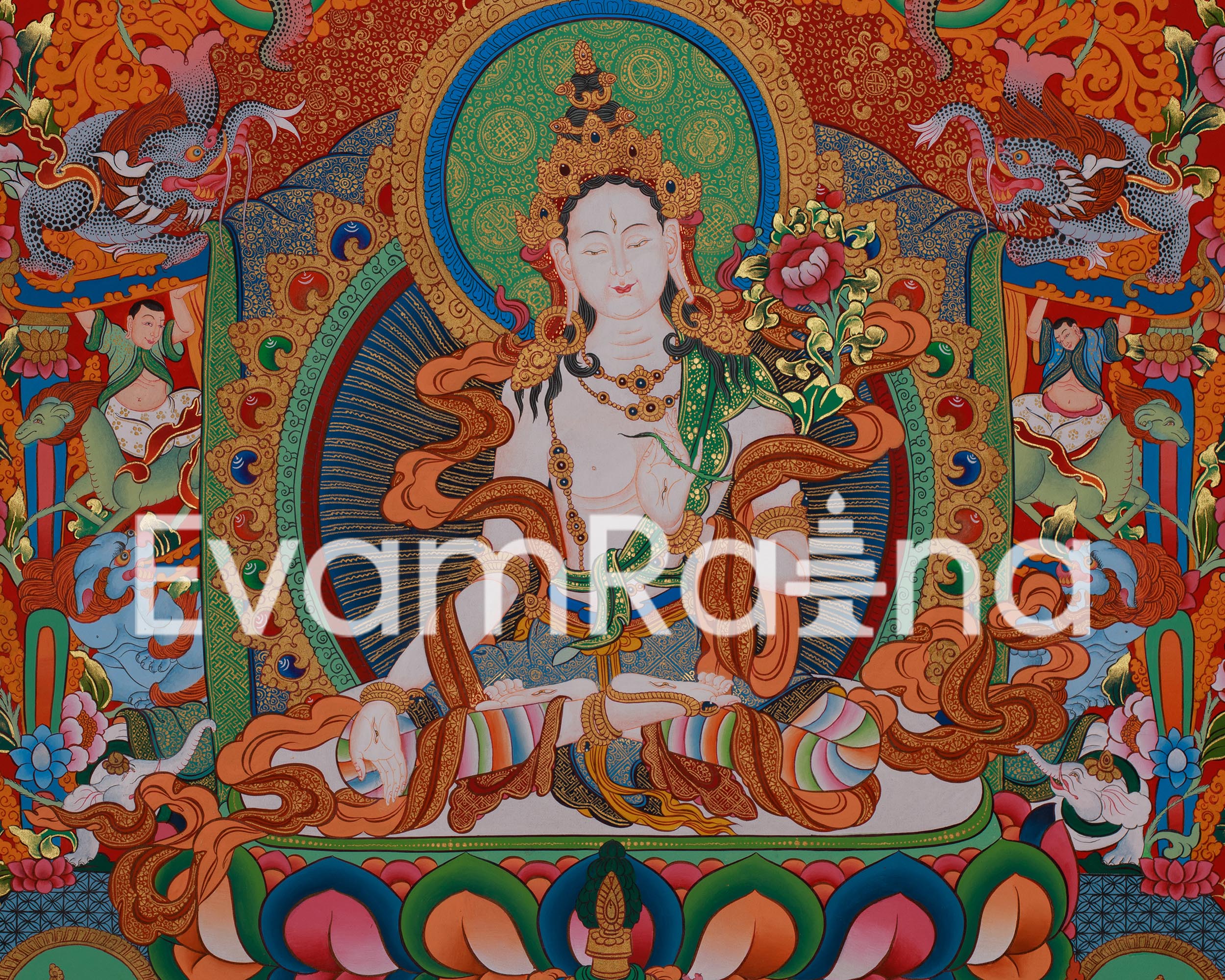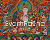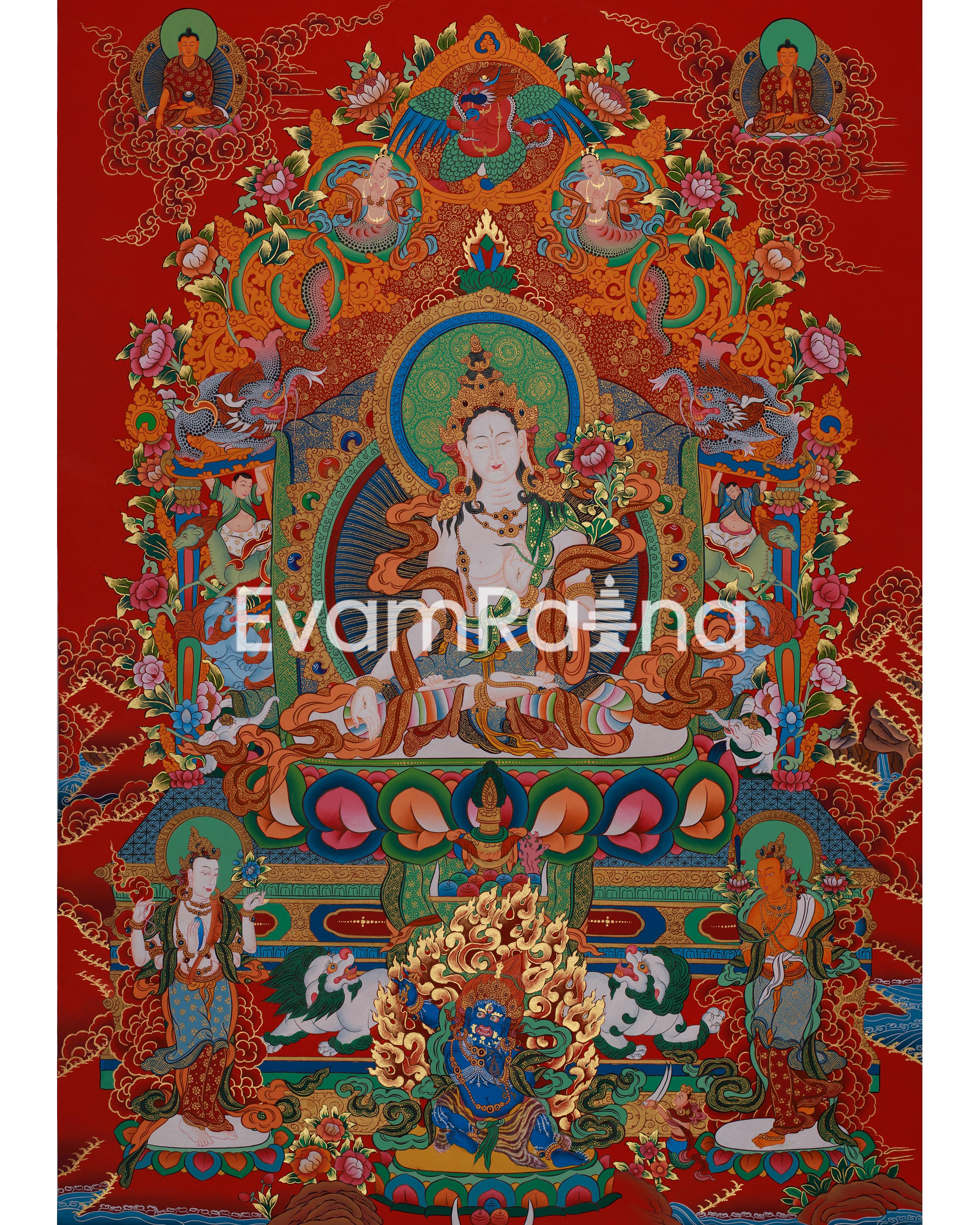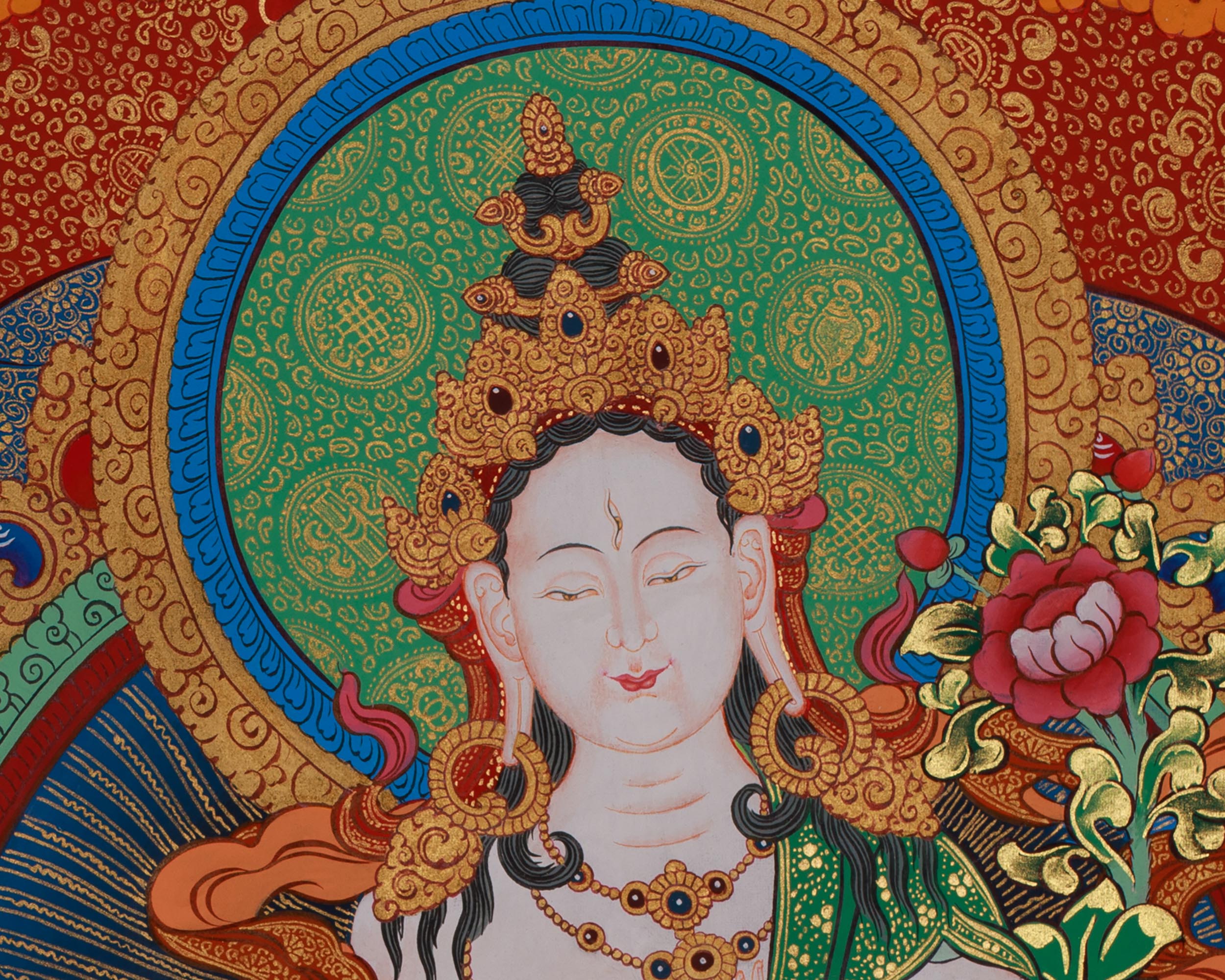 Tara with Buddhas and Bodhisattvas | White Tara Thangka for Healing, Wisdom & Longevity