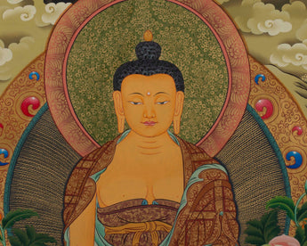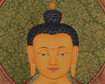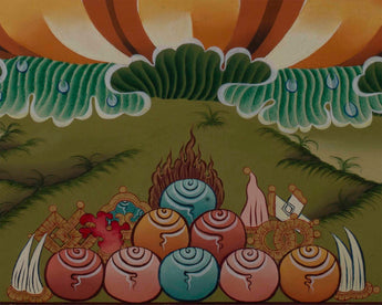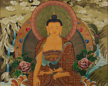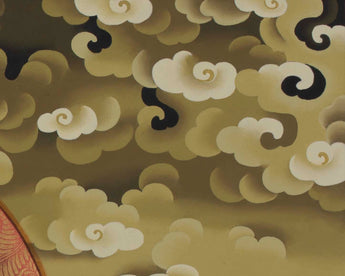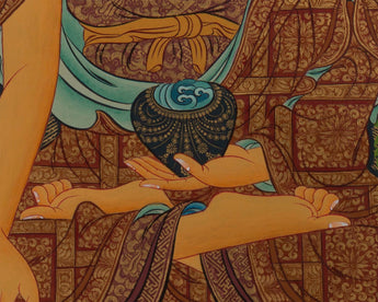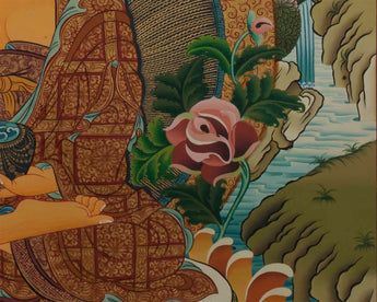 Our thangka is a handpainted Tibetan art done using traditional methods. It is a unique piece created using genuine 24K gold and natural stone colors.