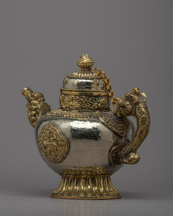 Our Tea Pot Kettle will add a touch of elegance to your interior design with the charm of Tibetan craftsmanship. Whether it's highlighting a dining area, a coffee table, or a display shelf, its presence gives your living space a sense of sophistication and refinement. Let this magnificent work of art inspire awe and gratitude in everyone who sees it, serving as a tribute to the rich cultural tapestry of Tibet.