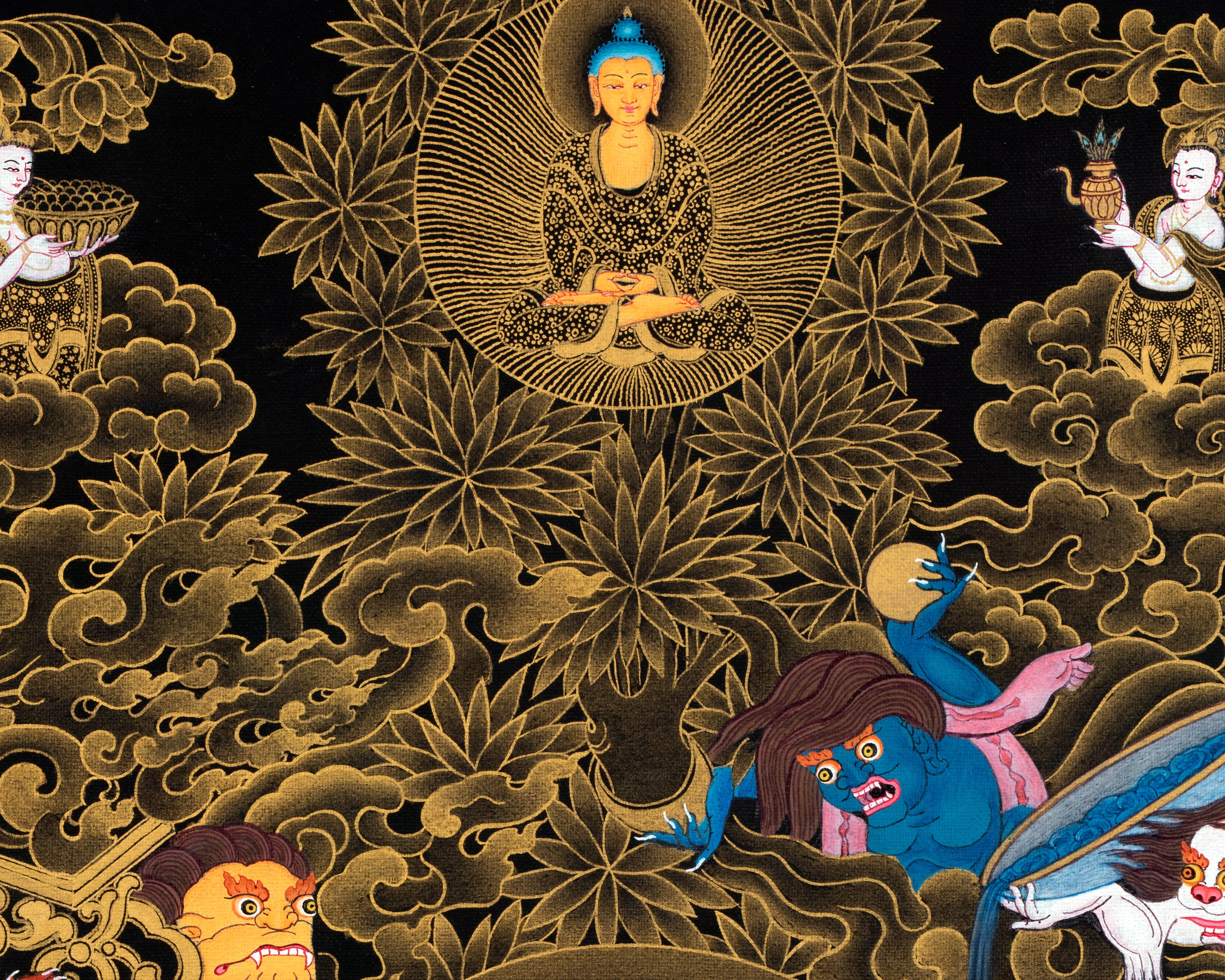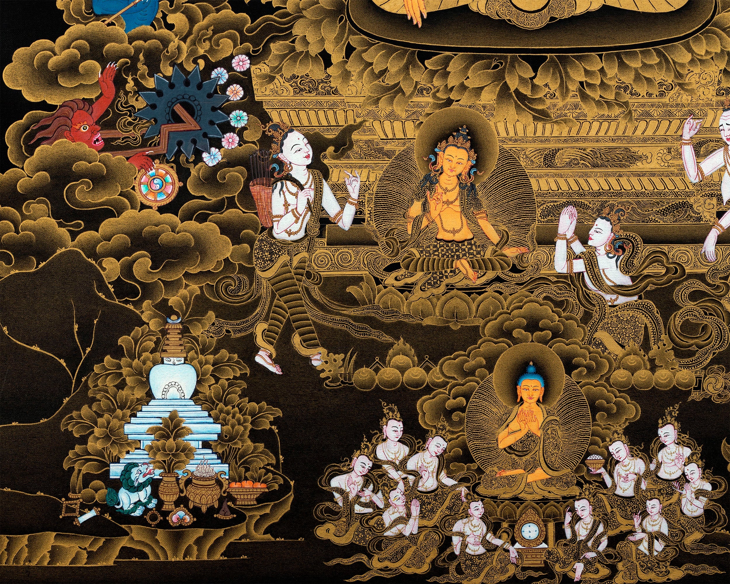 HAND-PAINTED WITH NATURAL STONE COLORS AND GENUINE 24K GOLD IN TRADITIONAL NAKTHANG STYLE