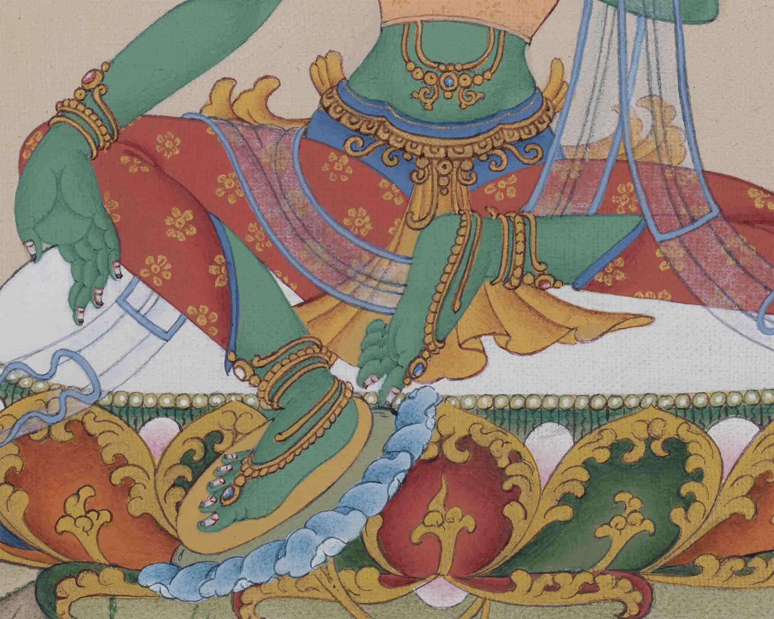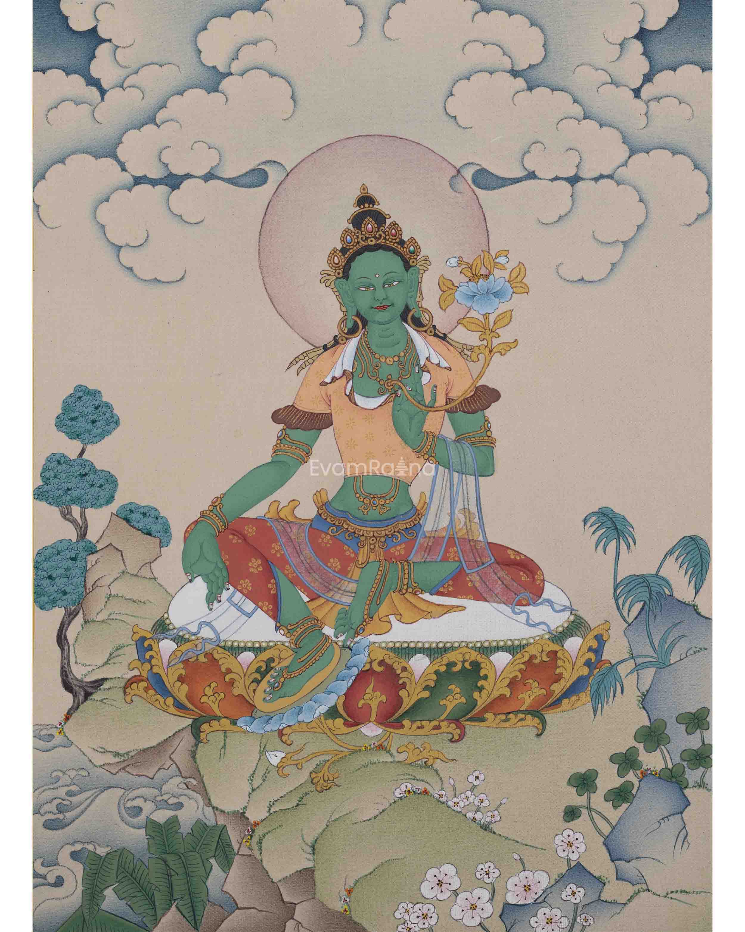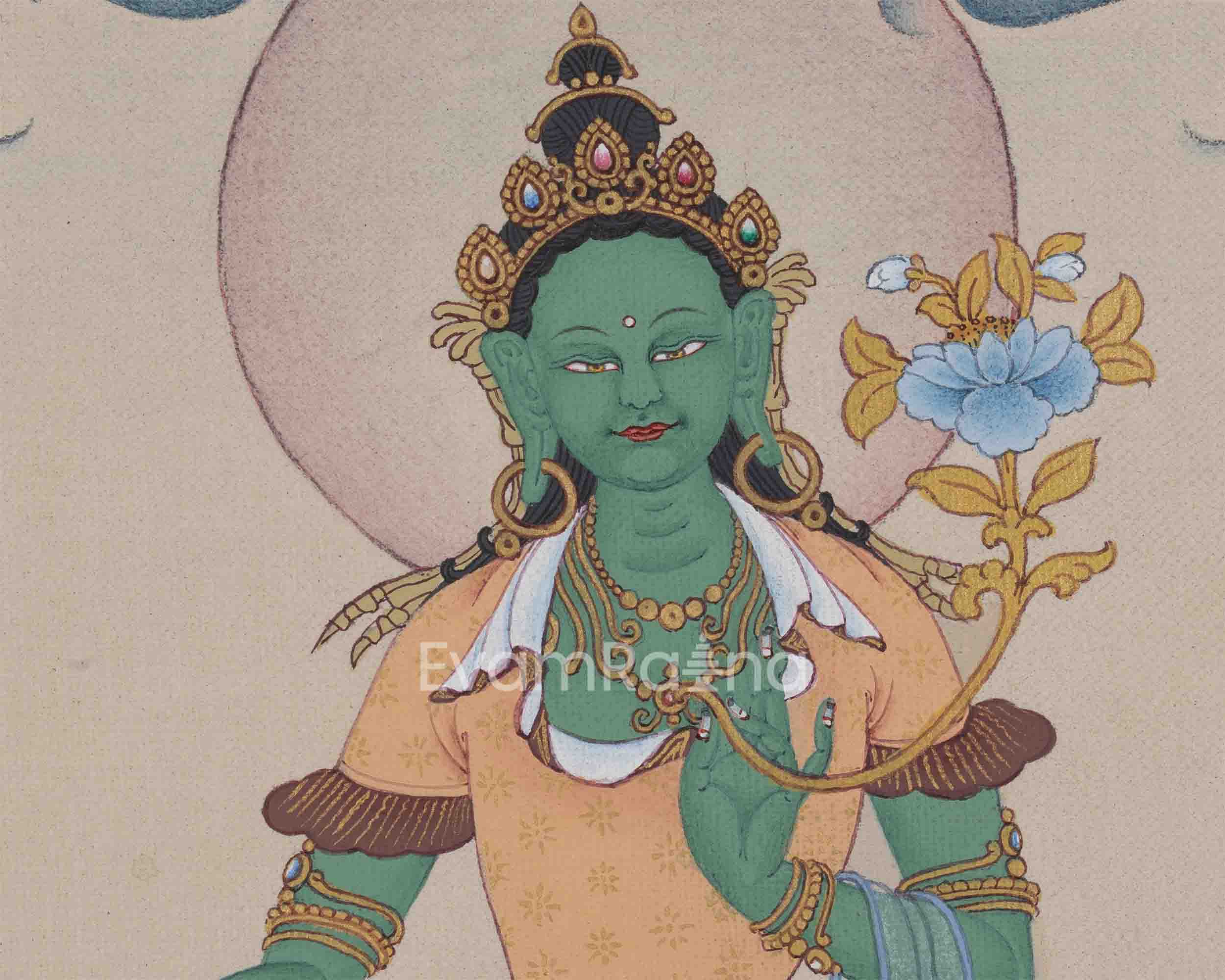 Thangka of Green Tara Goddess | Hand Painted Artwork | Buddhist Wall Decors