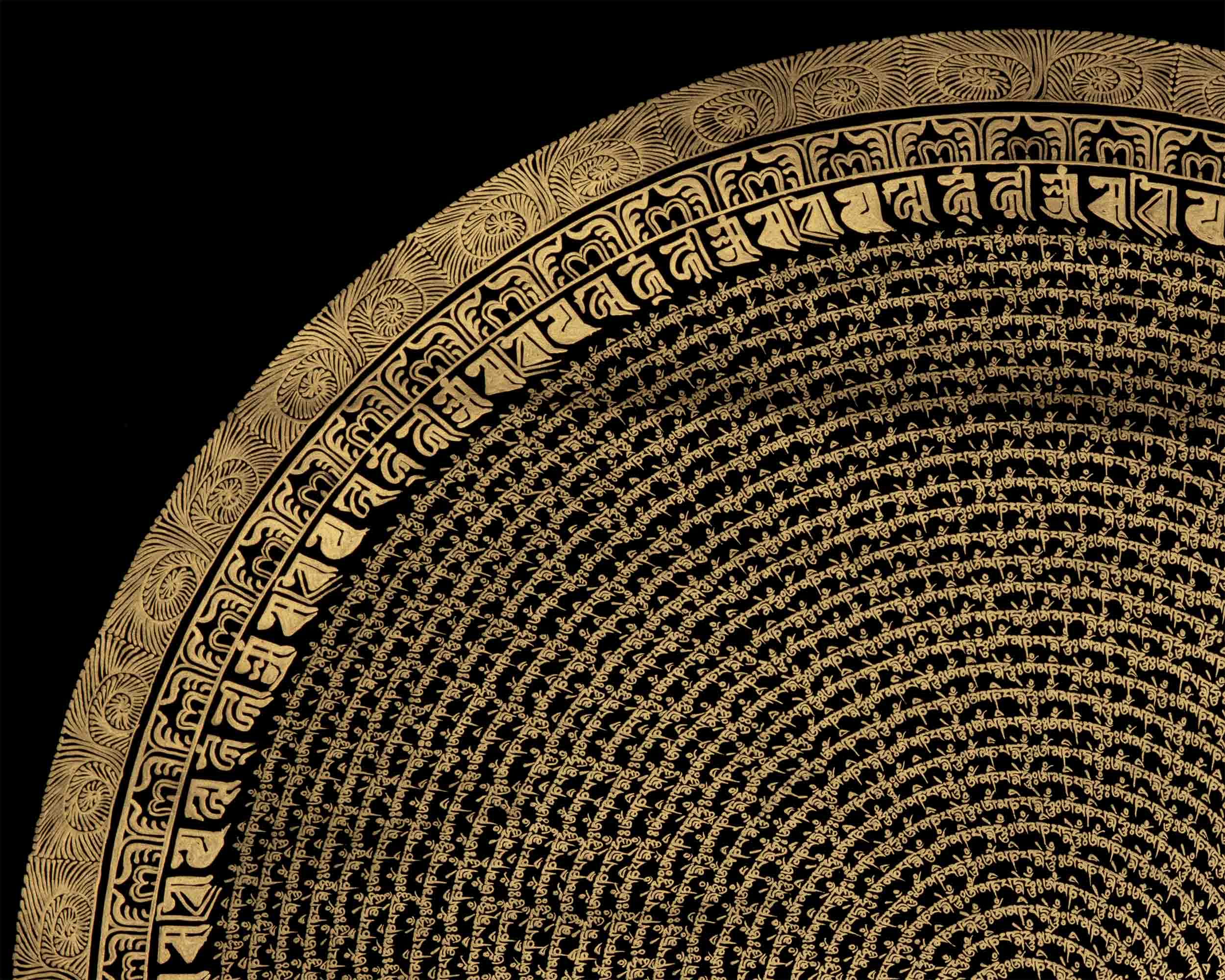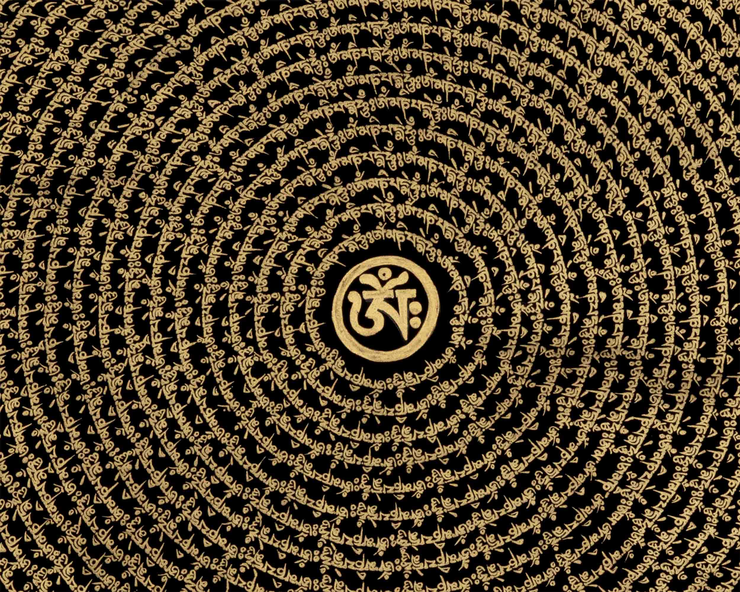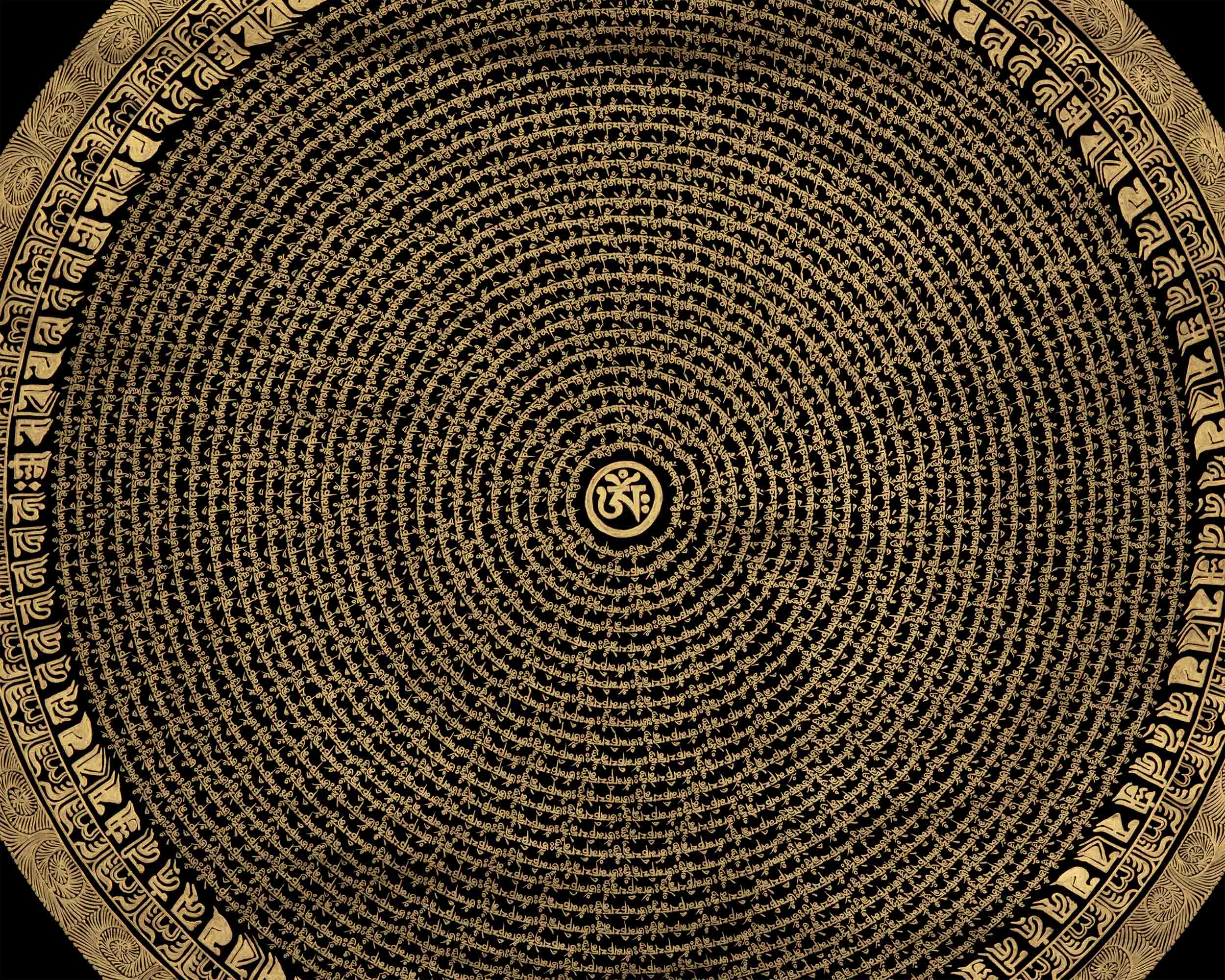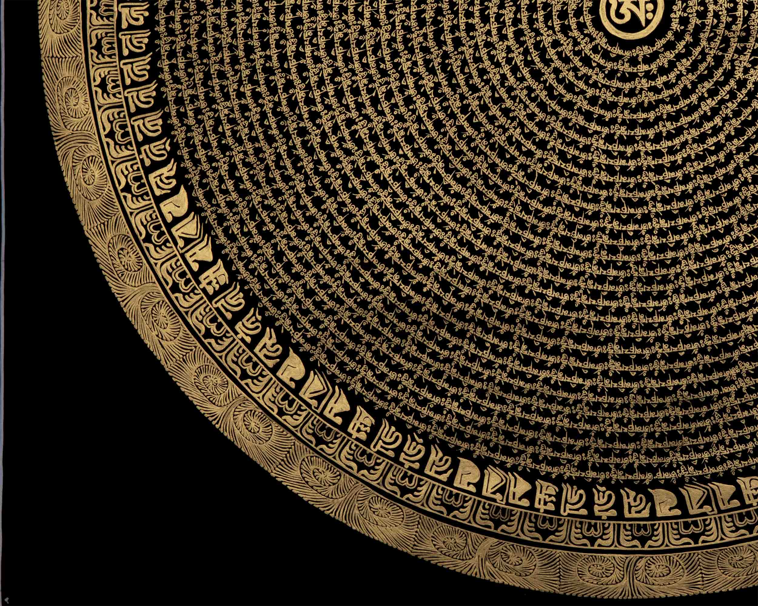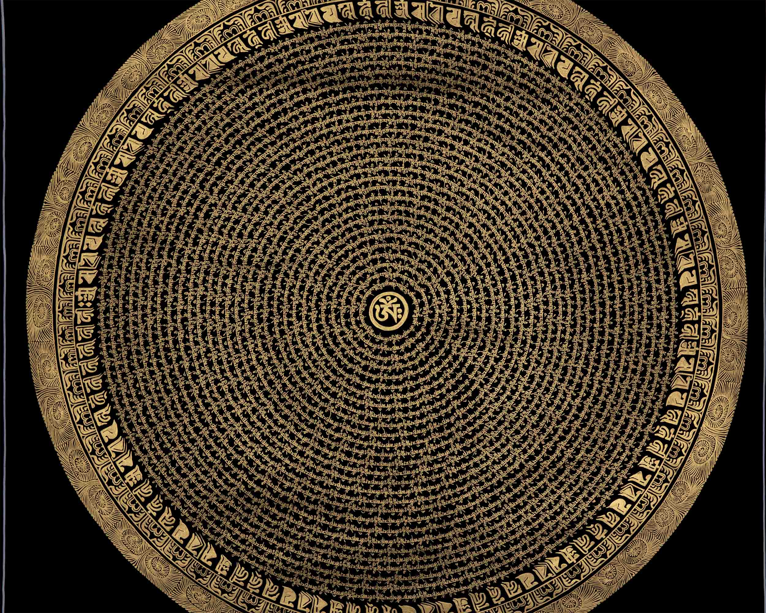 Introducing the enchanting Circular Om Mandala Thangka, a work of art that represents the cyclical nature of existence and spiritual harmony. This amazing piece of art has a circular pattern that is perfectly balanced and expresses the idea of infinite connectivity. The mystical Om sign, which represents the unchanging sound of creation, shines with heavenly force at its heart. The Circular Om Mandala Thangka, which was diligently painted with fine detail, inspires viewers to explore the depths of their own awareness. You can embark on a transforming path of self-discovery and spiritual awakening by displaying this precious artwork in your home and allowing its circular form and the symbol Om to serve as your guides. Enjoy the Circular Om Mandala's mesmerizing beauty and appreciate the connectivity of all life.