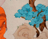 Reach into the sublime presence of the Blue Buddha (Medicine Buddha) through our sacred thangka art painted with acrylics color. This captivating depiction showcases the revered healing Buddha, radiant in a deep blue hue. Seated serenely in a vajra position, the Medicine Buddha holds a sacred bowl filled with potent healing nectars, symbolizing his profound ability to alleviate suffering and restore balance. With grace and compassion, his right hand holds a healing medicine, offering solace and remedy to all who seek it. This divine Thangka serves as a transformative meditation practice, allowing one to immerse themselves in the profound healing energies and wisdom embodied by the Medicine Buddha. Embrace the transformative power of this exquisite artwork and embark on a sacred journey towards spiritual and physical well-being.
