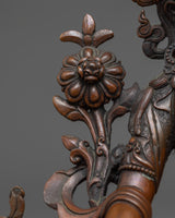 The seven eyes that White Tara has on her face, hands, and soles are what make her so beloved; they represent her omniscient knowledge of suffering in the world and her everlasting dedication to easing it. The oxidized copper lends the sculpture an air of timeless reverence, while the intricate detailing brings to life Tara’s compassionate gaze and the flowing elegance of her garments.