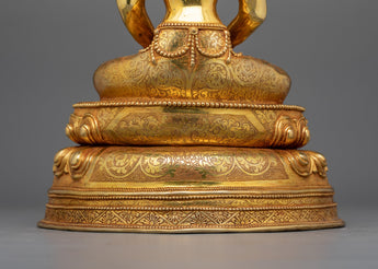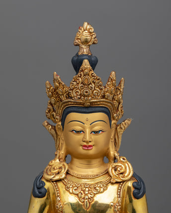 24K Gold Gilded Buddha of Boundless Life Amitayus Statue | Deity of Infinite light and Compassion