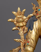 White Tara, a carefully hand-carved Buddhist deity, rests cross-legged on a double-petal lotus Seat. Her seven eyes, which represent her caring alertness, make her apart. Aside from the two usual eyes, she has a third eye on her forehead, one on each hand, and one on the soles of her feet. These distinguishing characteristics demonstrate her ability to recognize pain in all dimensions and her willingness to provide assistance and compassion to all beings.