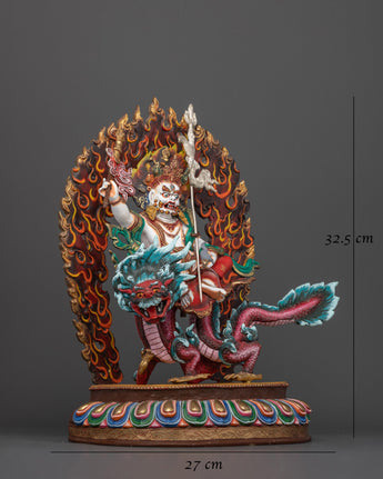 White Dzambhala, one of the five Dzambhalas, is revered in Buddhism as a wealth deity who embodies both material prosperity and spiritual generosity. Unlike other forms of Dzambhala, White Dzambhala is specifically associated with compassion and the removal of poverty and suffering. He is often depicted with a serene expression, holding a wealth-giving jewel and a mongoose that spews precious gems, symbolizing the endless flow of blessings and wealth that he bestows upon those who honor him. White Dzambhala is a powerful symbol of the abundance that arises from a generous heart and the practice of compassionate giving.