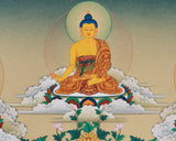 The Eight Healing Buddhas are deeply revered in Tibetan Buddhism for their powerful healing qualities. They represent physical and spiritual healing, compassion, and protection from suffering. The composition centers around Bhaisajyaguru (Medicine Buddha), the principal deity associated with healing illnesses and purifying negative karma. Surrounding him are seven other healing Buddhas, each embodying unique healing energies and blessings.