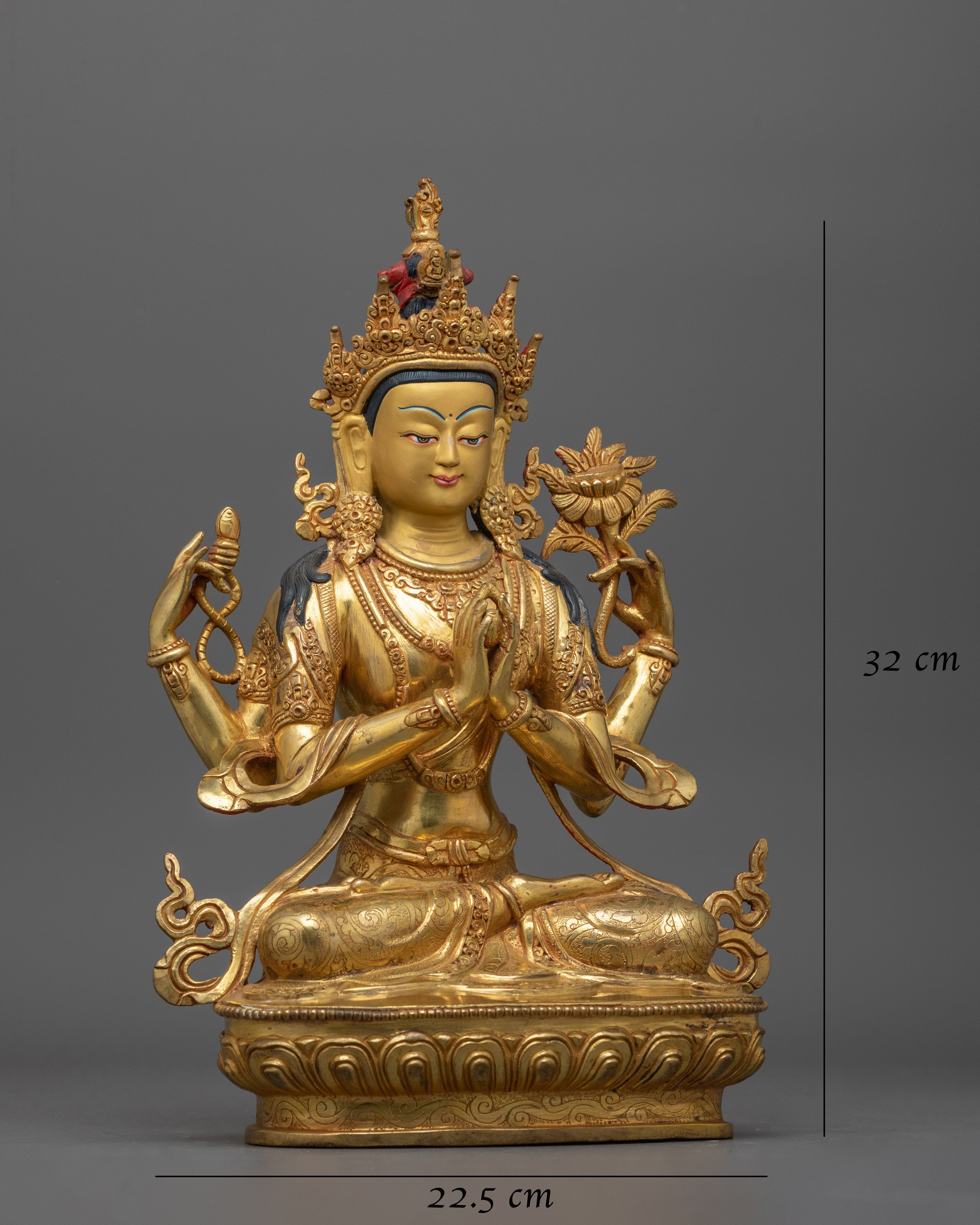 Handcrafted 24K Gold Gilded Chenrezig – The Embodiment of Compassion and Loving-Kindness