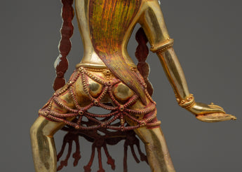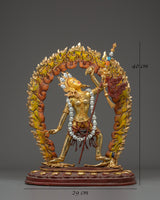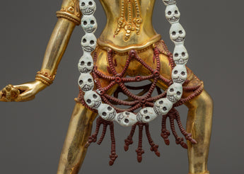 Vajrayogini, a revered deity in Vajrayana Buddhism, embodies enlightened feminine energy and ultimate wisdom. Known for her fierce yet compassionate nature, she guides practitioners swiftly along the path to enlightenment by cutting through illusion. This statue captures her dynamic dancing pose and symbolic ornaments, reflecting her role as a powerful tantric guide. Adorned with meaningful iconography such as flames and ritual implements, it represents transformation of desire and fear into pure awareness. A compelling piece for spiritual seekers, it connects you deeply to Vajrayana’s profound meditative practices.