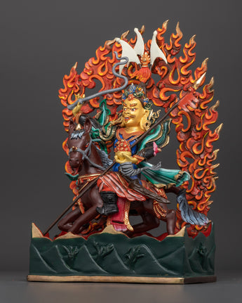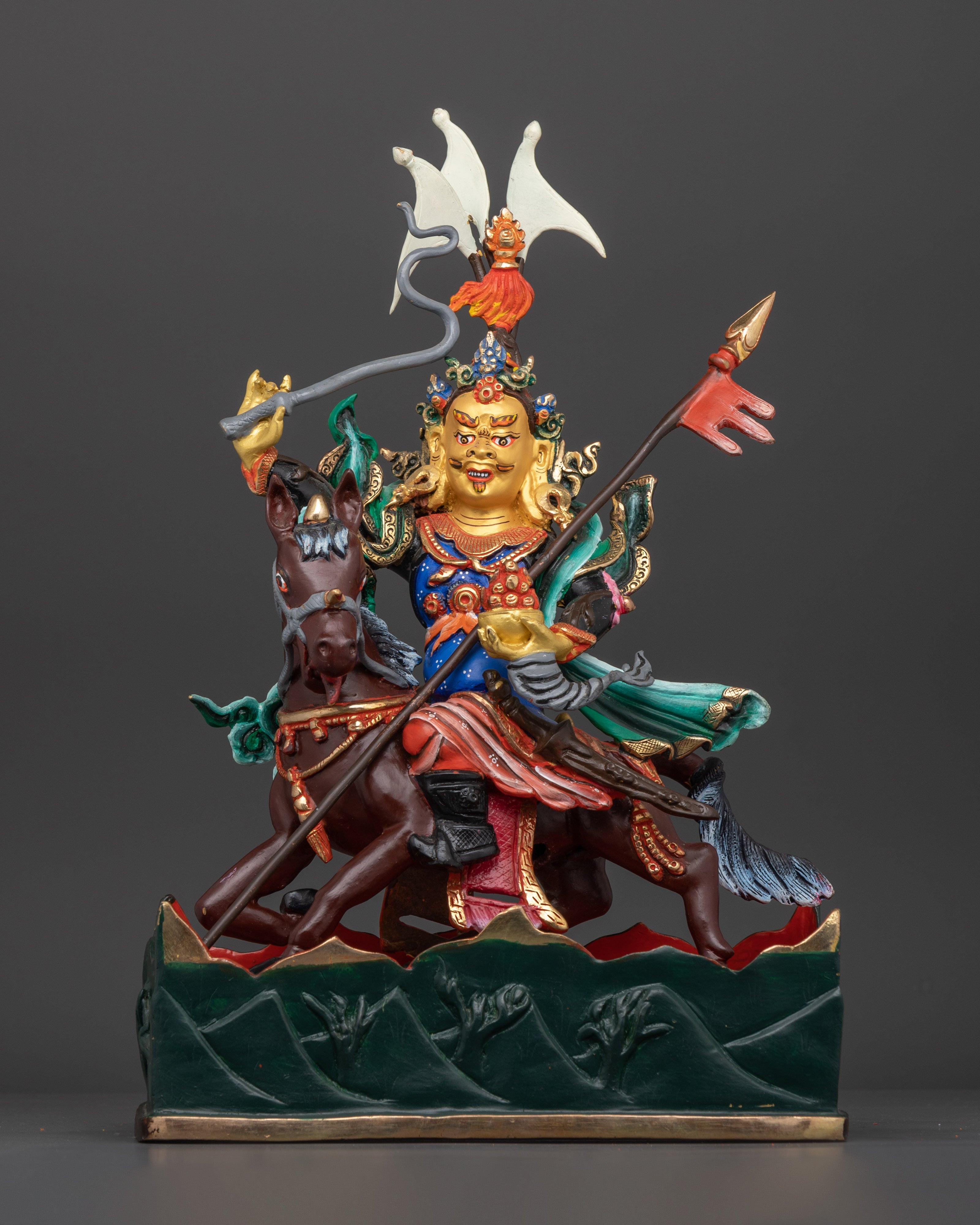 Standing at 13.8 inches in height and 9.4 inches in width, King Gesar is depicted in his royal armor, ready for battle. His posture exudes confidence and authority, while his expression reflects both compassion and determination. The detailed armor, flowing robes, and royal insignia are crafted with incredible precision, highlighting the legendary status of this warrior king.