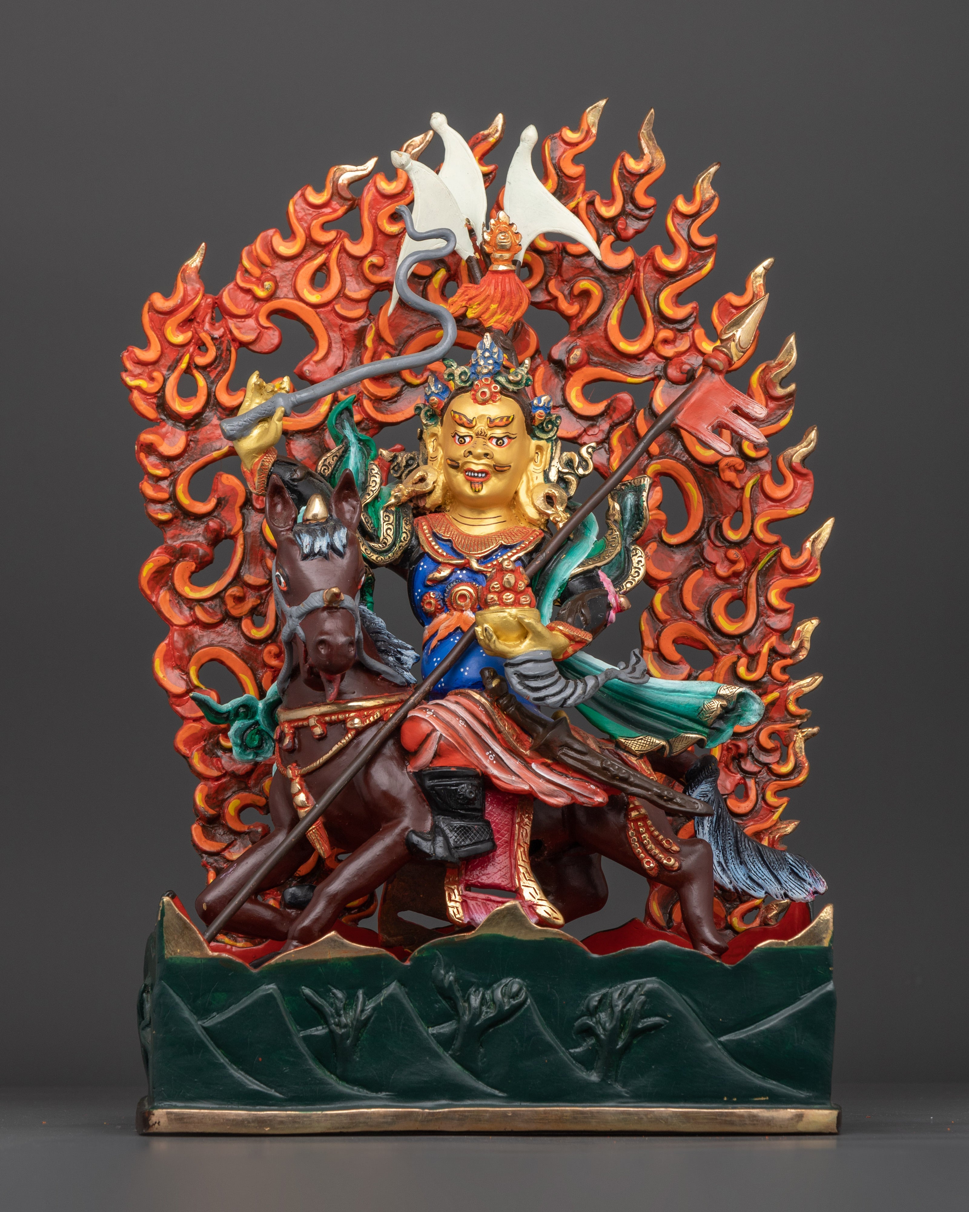 Invite the powerful energy and courageous spirit of Legendary Warrior King Geshar into your space with this finely handcrafted statue. Created by master artisans in Patan, Nepal—renowned for their meticulous metalwork—this statue captures the fierce and regal essence of King Gesar, making it a powerful symbol of protection, victory, and spiritual strength.
