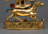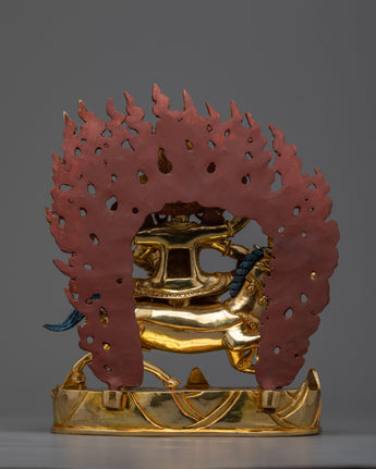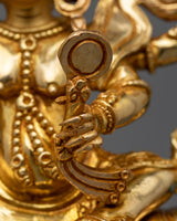 With our intricately sculpted Rangjung Gyalmo statue, you may add a touch of spiritual beauty to your haven. It exudes a harmonious blend of beauty and tranquillity that lifts your spiritual space, and it is impeccably embellished with a rich layer of 24k gold gilding and brilliant acrylic paintings. This piece's contours and details, set upon a robust copper body, highlight the pinnacle of skillful craftsmanship, transforming your environment into a refuge of tranquility and mindfulness.