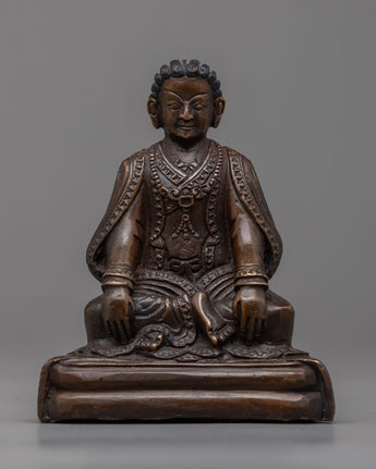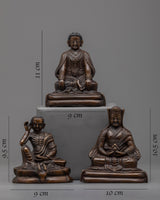 Are you looking for a special, peaceful addition to your home's aesthetic that also reflects your spiritual development? Our Mini Marpa Set is the only thing you need. Three oxidized copper statues of Marpa, Gampopa, and Milarepa are included in this outstanding set. They were each expertly produced utilizing lost wax casting techniques. These little works of art, each measuring 4.3" tall and weighing 1.46 kg, are intended to inspire and improve any living environment. Our statue is perched perfectly on a 3.5" base and features rich details that reflect the piece's expert craftsmanship. The sculptures capture the everlasting wisdom of Buddhism while bringing a touch of timeless elegance to your house thanks to their oxidized copper bodies, which give them an ancient appearance.