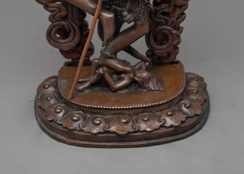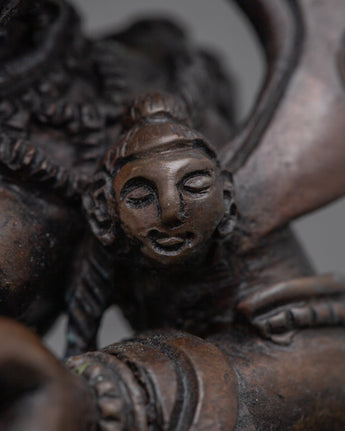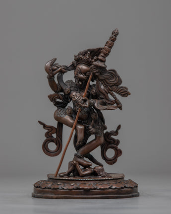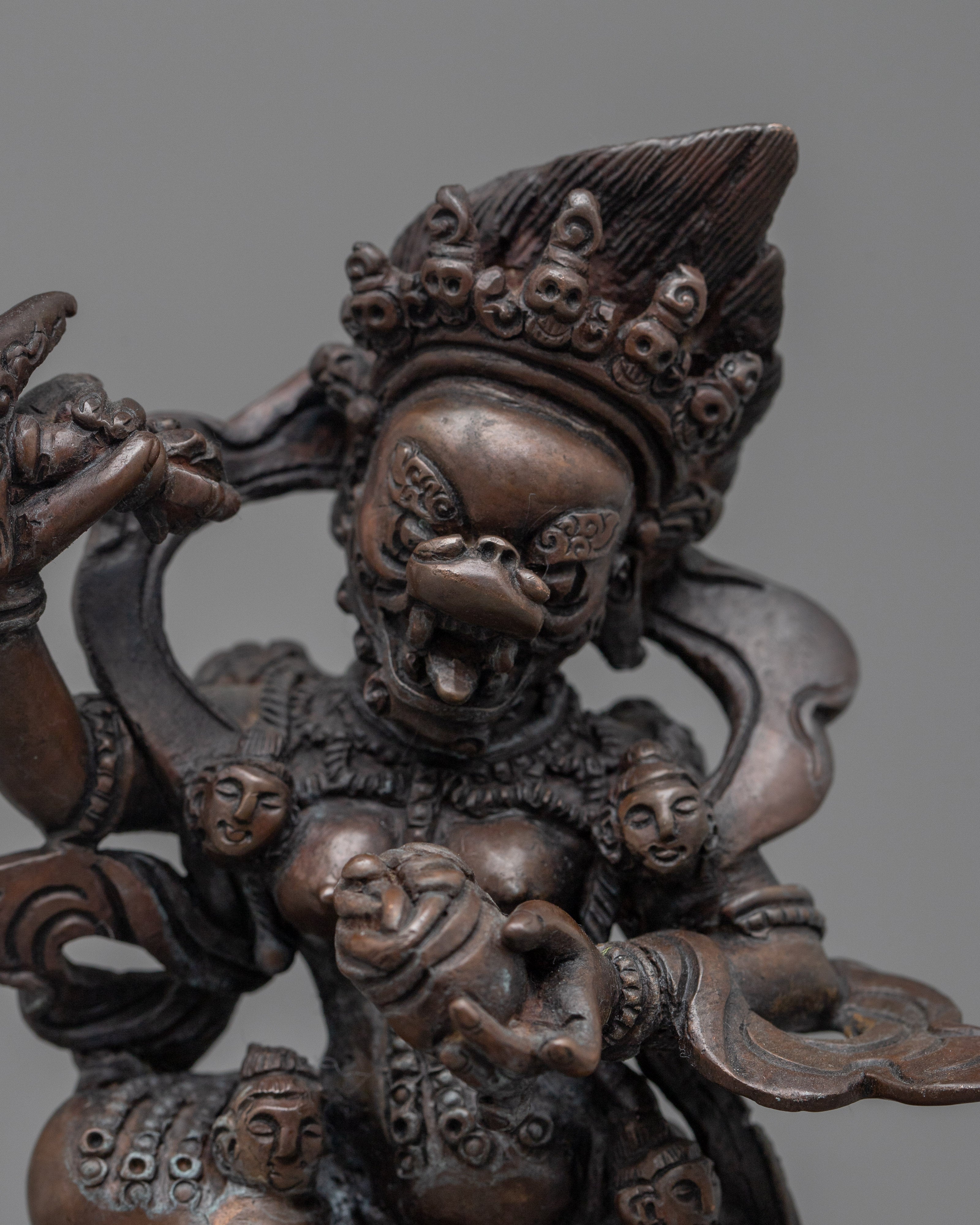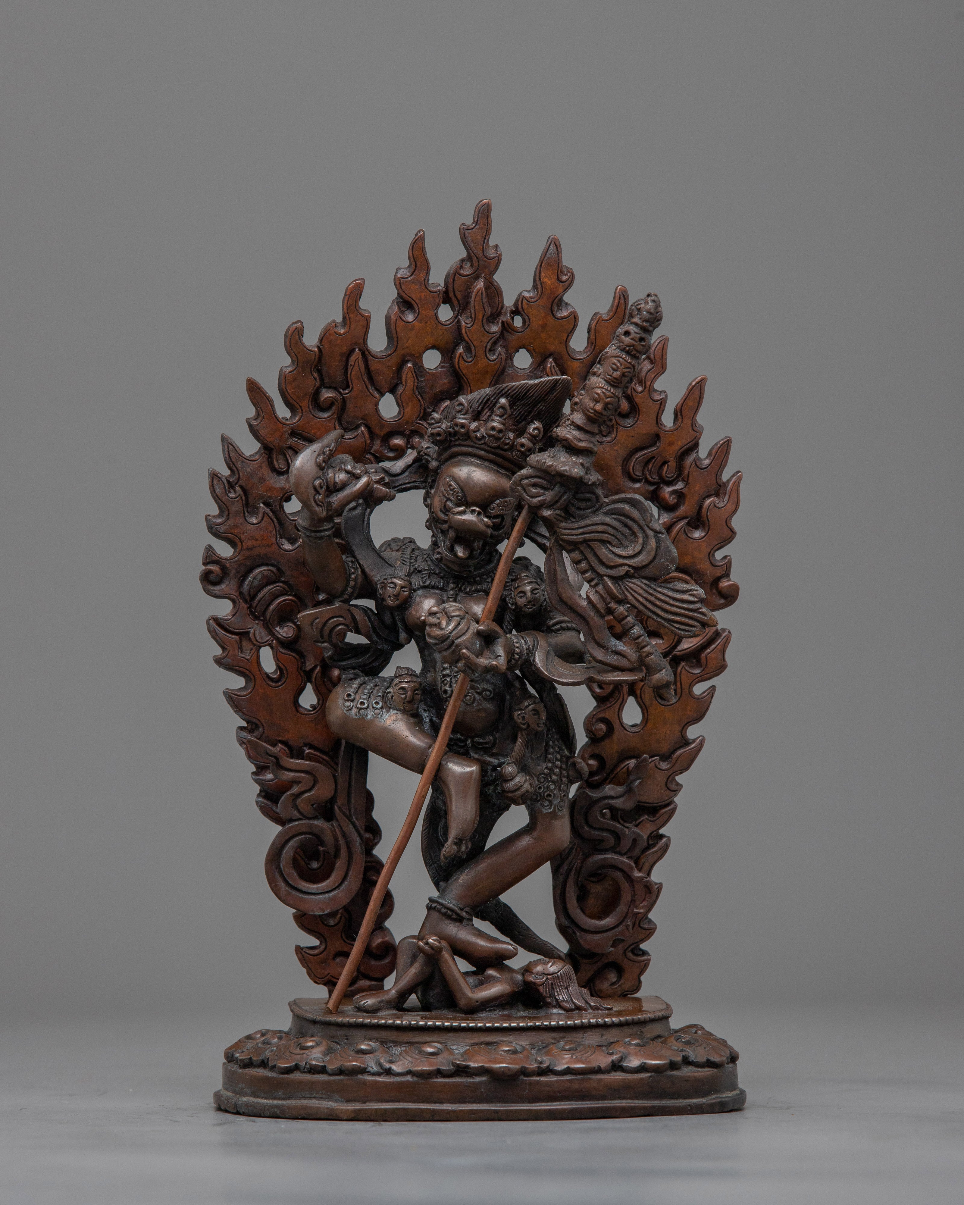 The Singhamukha Statue, which stands 8.3"/21cm tall and weighs 1.340 kg, will provide significant power to your sacred place. With its oxidized copper body and fine handiwork, this fine piece of art exudes knowledge and heavenly power. Renowned in Tibetan Buddhism for her embodiment of knowledge and protection, Singhamukha bestows her transformational energy on your surrounds. Invite Singhamukha's radiant energy into your life and embark on a path of spiritual development and enlightenment.
