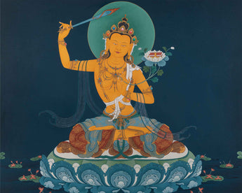 Awaken Your Inner Wisdom with our Majestic Manjushri Thangka Print