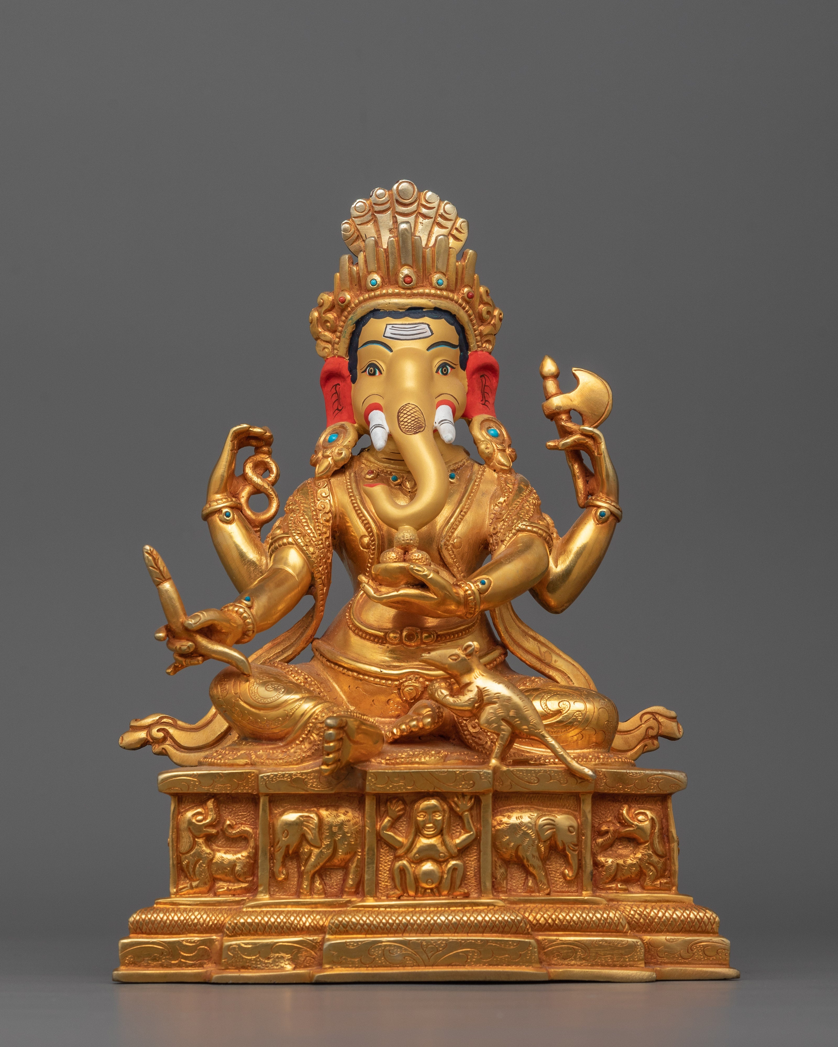 The Hindu deity Ganesha is represented by the highly respected Four-Armed Ganesha, also called Chaturbhuja Ganesha, who stands for intellect, wisdom, and the elimination of obstacles. His four arms are filled with several objects: a bowl of sweets symbolizing the sweetness of spiritual satisfaction; a broken tusk, or modaka, marking the rewards of wisdom; a noose, to capture and control challenges; and a goad, to propel forward and remove impediments. Every object highlights a different facet of his heavenly essence. Many people draw and worship this version of Ganesha in hopes of receiving advice and benefits. He is the embodiment of the many functions of an opportunist, a leader, and a giver of blessings.