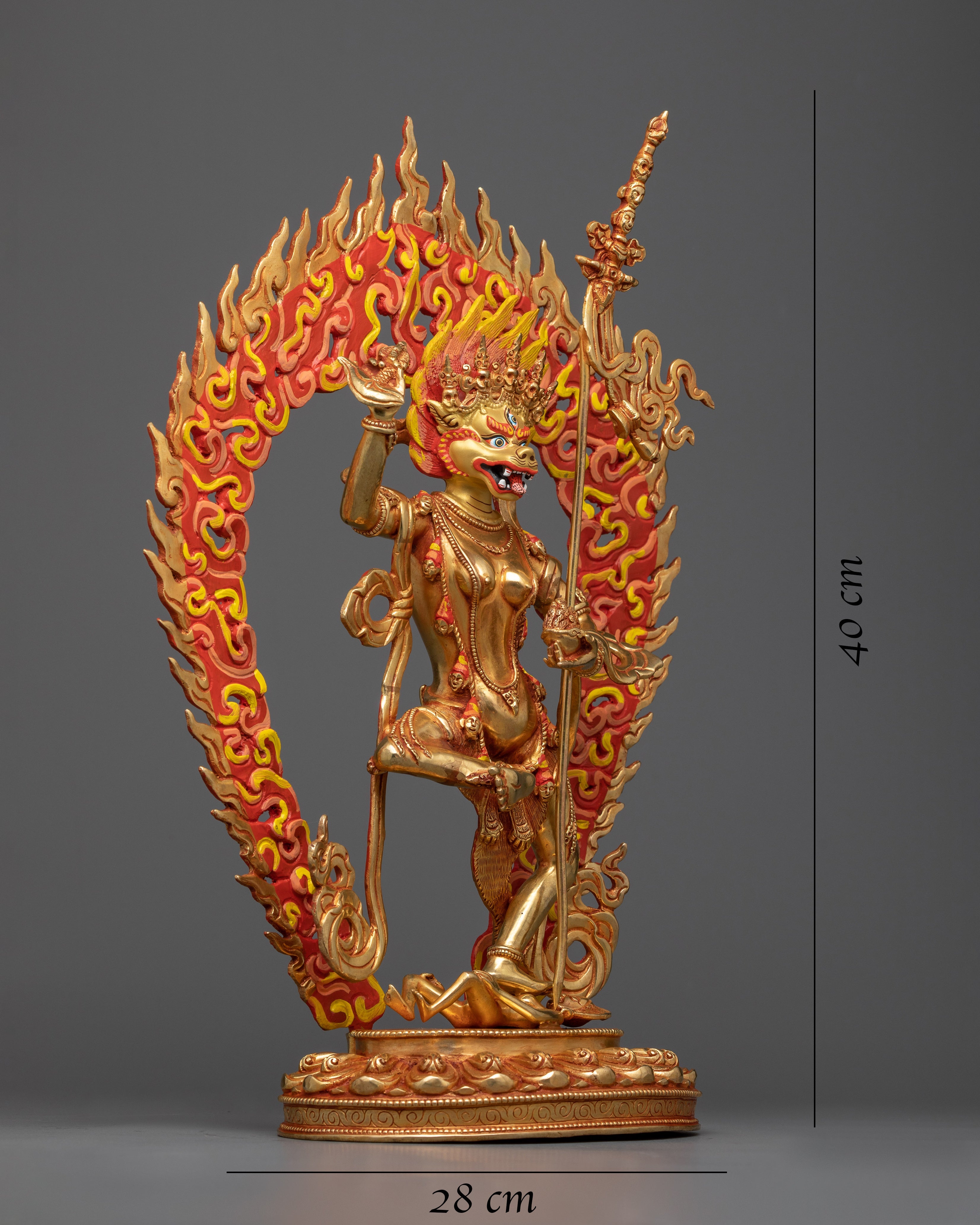 Simhamukha is a powerful Buddhist deity famed for her lion-faced visage, embodying a fearless but caring energy. She is often seen as a remover of impediments and a protector against negativity, guiding people on a road of enlightenment and personal growth. This statue encapsulates her tremendous nature, providing a concrete conduit for connecting with her transformational energy, creating a refuge of serenity and spiritual fortitude in your surrounds.