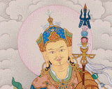 Guru Rinpoche, also known as Padmasambhava, is considered the teacher of the Dharma in Tibetan Buddhism. Revered for his ability to transform and spread the teachings of Buddha throughout Tibet, Guru Rinpoche is a symbol of wisdom, compassion, and spiritual mastery. In this thangka, he is depicted seated in a peaceful meditative posture on a radiant lotus throne, holding a vajra and a skull cup—symbols of his wisdom and his power to transform suffering into enlightenment. His serene expression and regal attire reflect his enlightened nature and divine presence, making this piece an important spiritual guide.