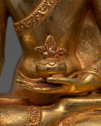 Medicine Buddha, also known as Bhaishajyaguru in Sanskrit, is regarded as the Buddha of Healing. His teachings aim to free sentient beings from sickness, pain, anguish, and unhappiness while also emphasizing the need to acquire prosperity and enjoyment in this life. Many meditators in the Mahayana tradition admire his healing abilities. He is frequently shown with a blue (lapis lazuli) body and hands carrying a begging bowl and medical herbs.