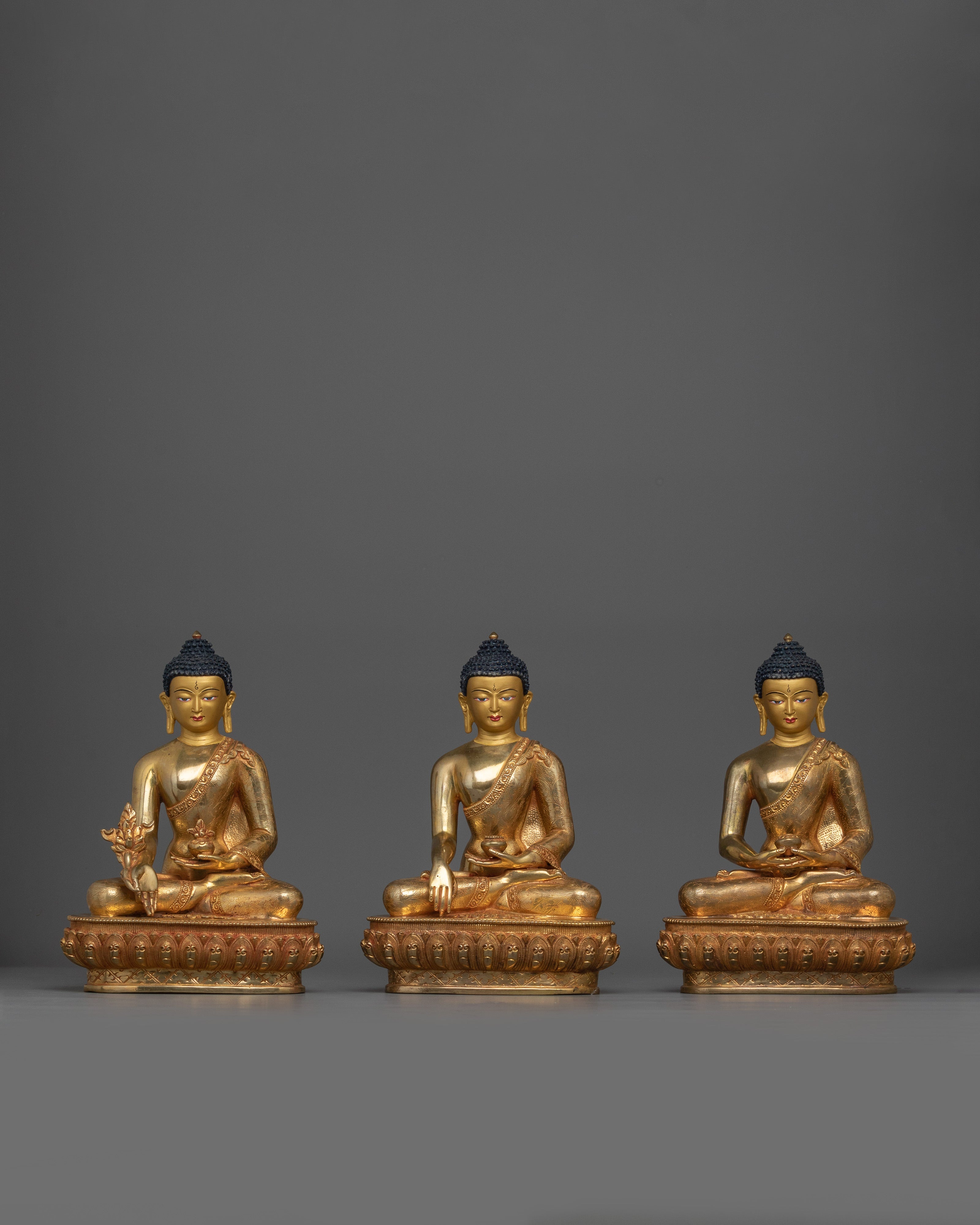 The Three Buddha Set Statues | Medicine, Shakyamuni, and Amitabha for Spiritual Practice