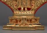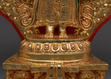Our Thousand-Armed Avalokiteshvara statue is a timeless emblem of boundless compassion, embodying the Buddha's commitment to healing the suffering of all sentient beings. This airy piece stands 14.1 inches (36cm) tall on a 10.6 inch (27cm) base and weighs 1.93 kg. Over a sturdy copper body, the statue is beautifully embellished with 24k gold gilding and intricate acrylic paintings.