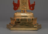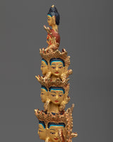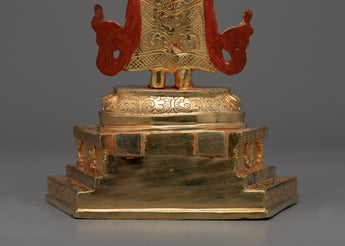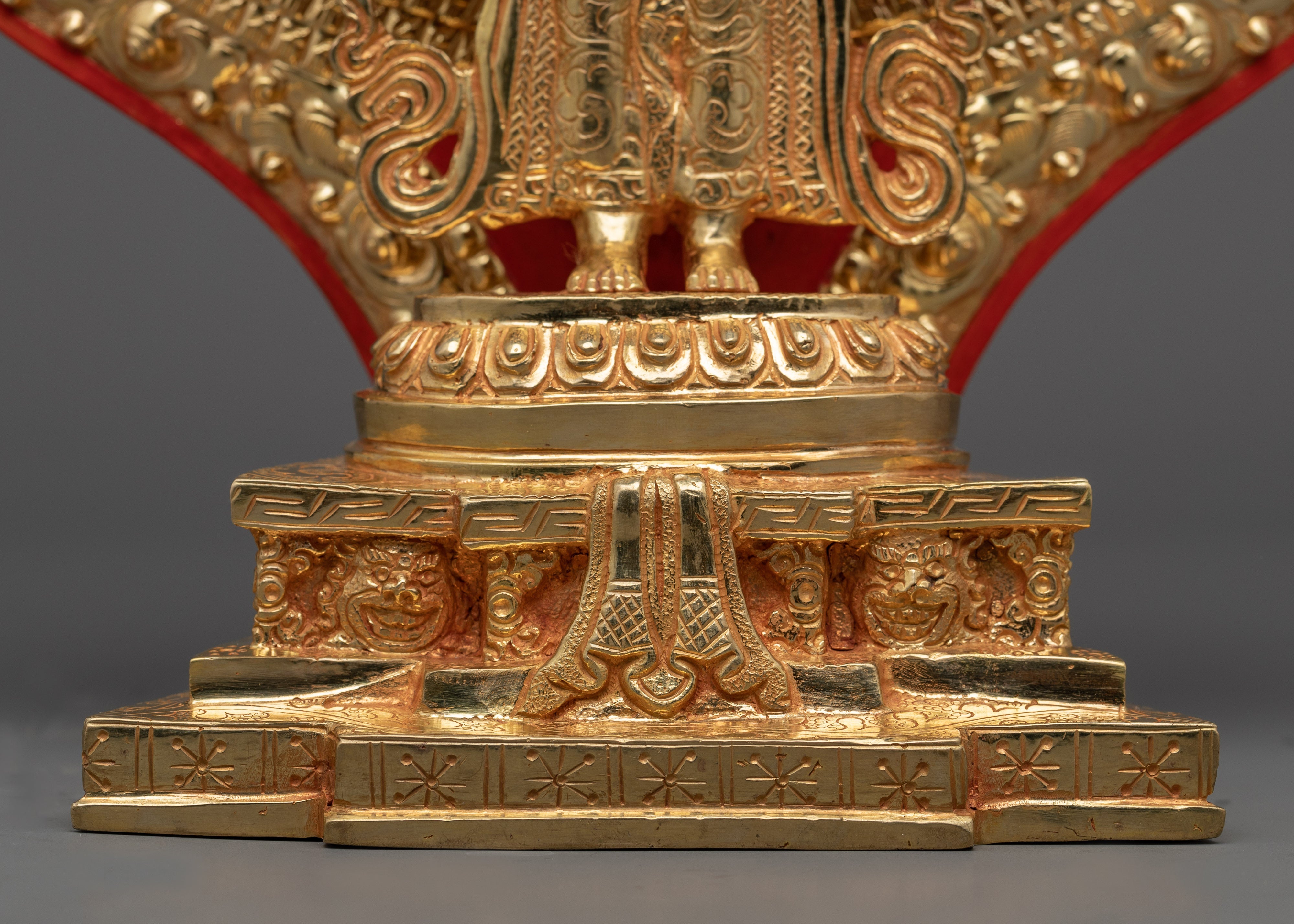 This beautiful sculpture combines artistic skill and spirituality. The gold gilding on the statue lends it a refined beauty, and the hand-painted embellishments brilliantly highlight the delicate form and symbolism of each arm. The copper body provides durability and promises numerous periods of meditation and introspection.