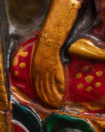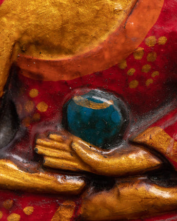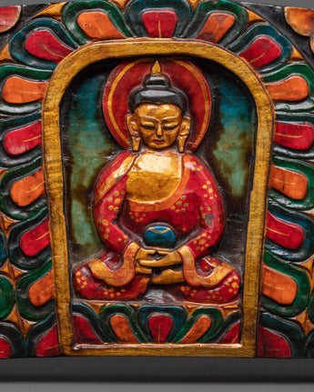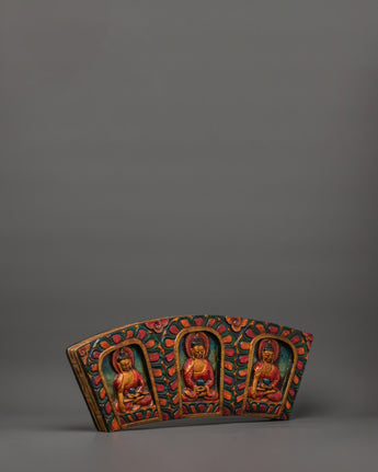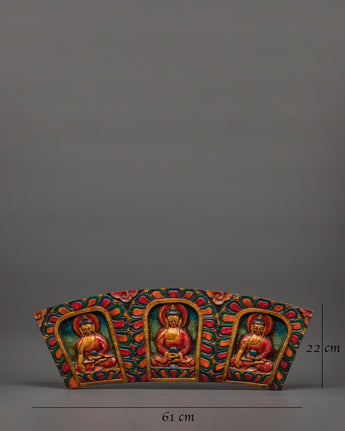 The artwork is expertly carved from wood and painted in vibrant acrylic colors, making it a unique and meaningful addition to your home. The three Buddhas represent knowledge, serenity, and enlightenment, with Amitabha Buddha in the center, embodying boundless compassion and the aspiration for rebirth in his Pure Land.