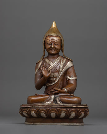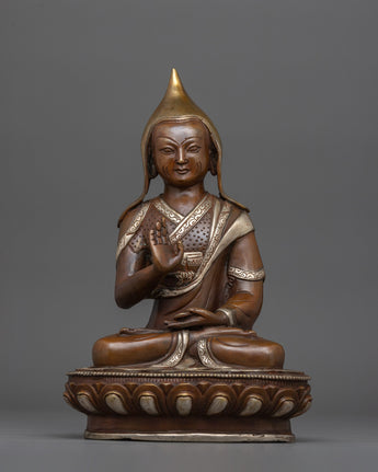 Oxidized Hand-crafted Tsongkhapa and Disciples Statue Set | Traditional Symbol of Buddhism's Legacy and Wisdom