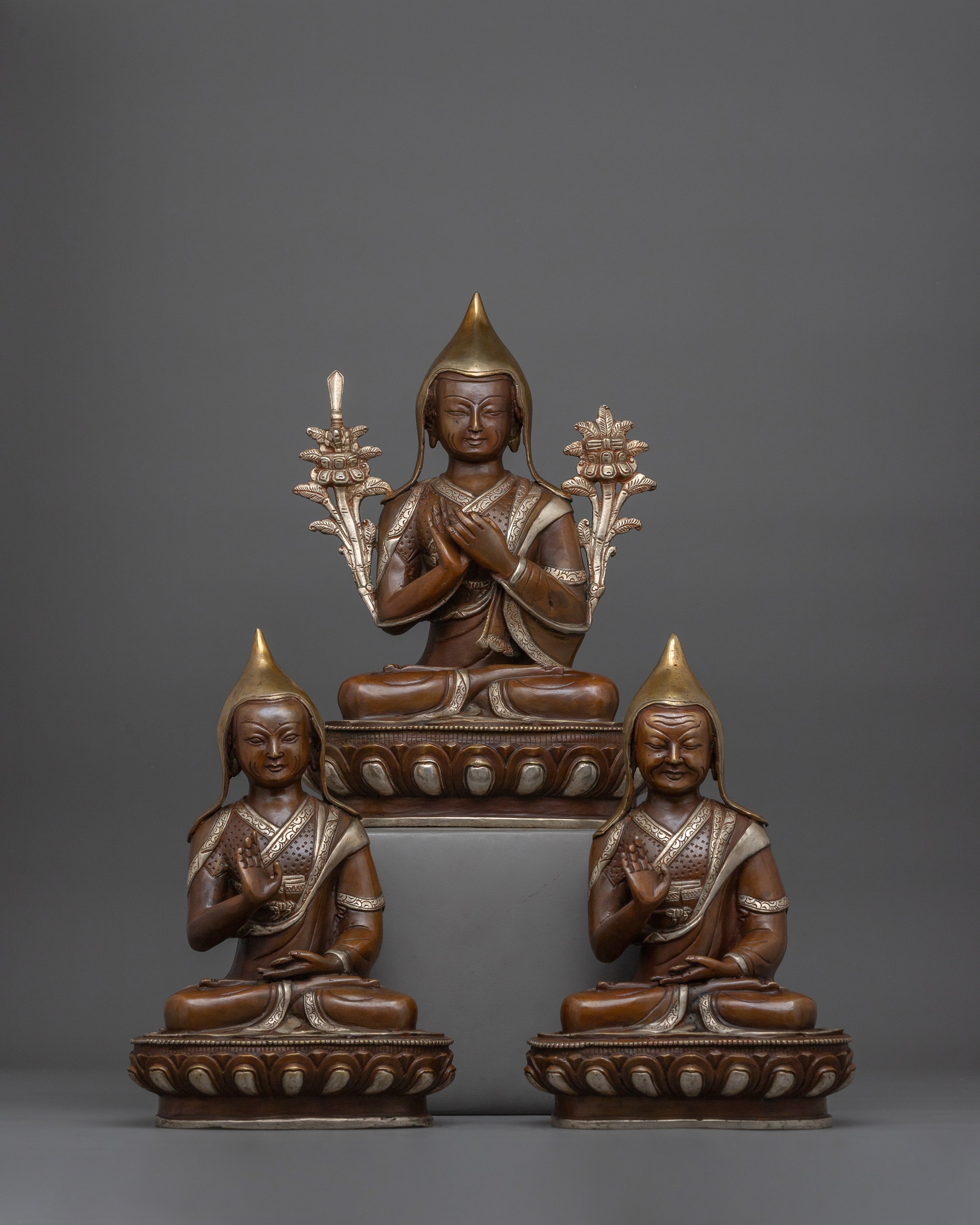 Tibetan Art Tsongkhapa and Disciples Statue Set | Hand-crafted Buddhist Master Sculpture