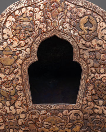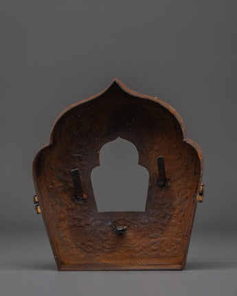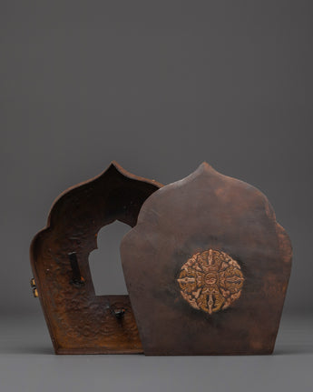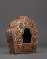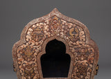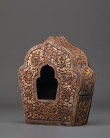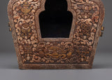 Creating this box involves both technical skill and an understanding of Tibetan spiritual traditions. Artisans hand-carve each design, illustrating the close link between art and spirituality in Tibetan culture. The central open archway enhances its mystique, inviting energy and functioning as a vessel for sacred relics. Its craftsmanship and meaningful motifs make this Ghau Box a valuable tool for meditation, prayer, or decoration in sacred spaces. It is an ideal piece for those wanting to connect with Tibetan cultural traditions.