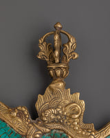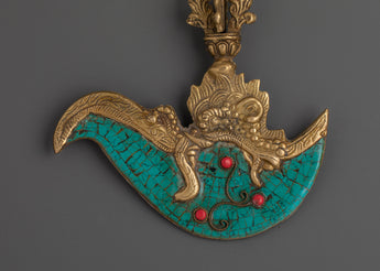 The Tibetan Brass Kartika Knife is more than an artifact; it represents centuries of spiritual heritage and Buddhist practices. Its brass structure promotes quality, while the turquoise and coral inlays symbolize knowledge and vigor, respectively. This handcrafted spiritual tool is perfect for use in Tantric rituals or as a meditation accompaniment. The Kartika, used in Tibetan Buddhism, represents the severance of attachments and the removal of misconceptions. This lovely knife can also make a thoughtful gift for individuals who value sacred items or wish to enrich their spiritual journey.