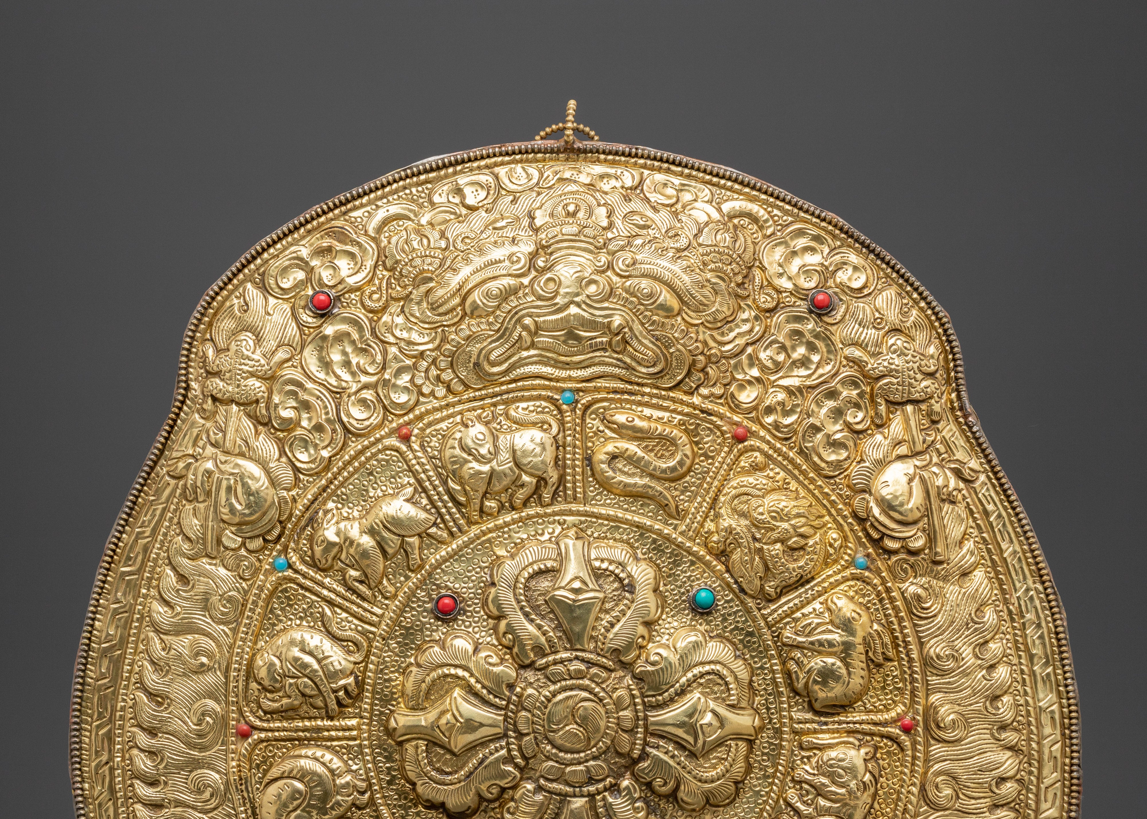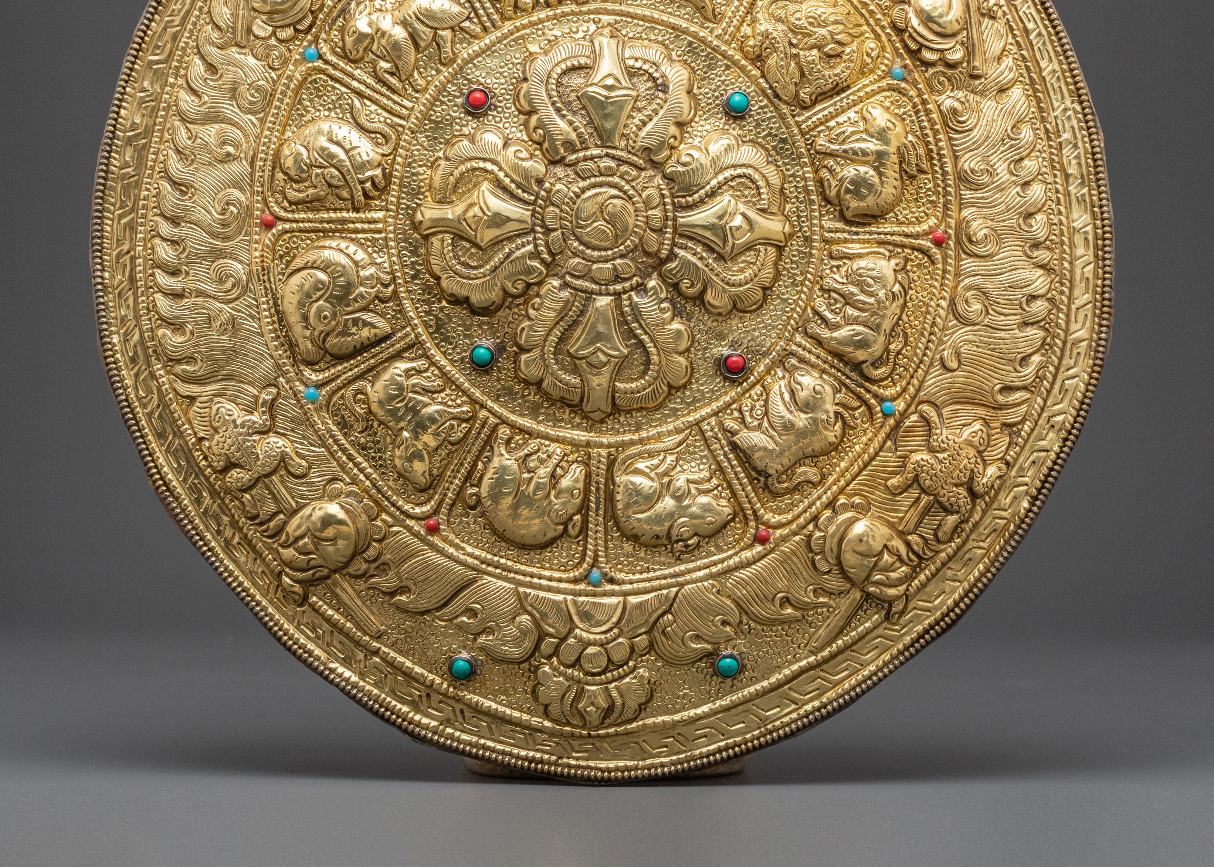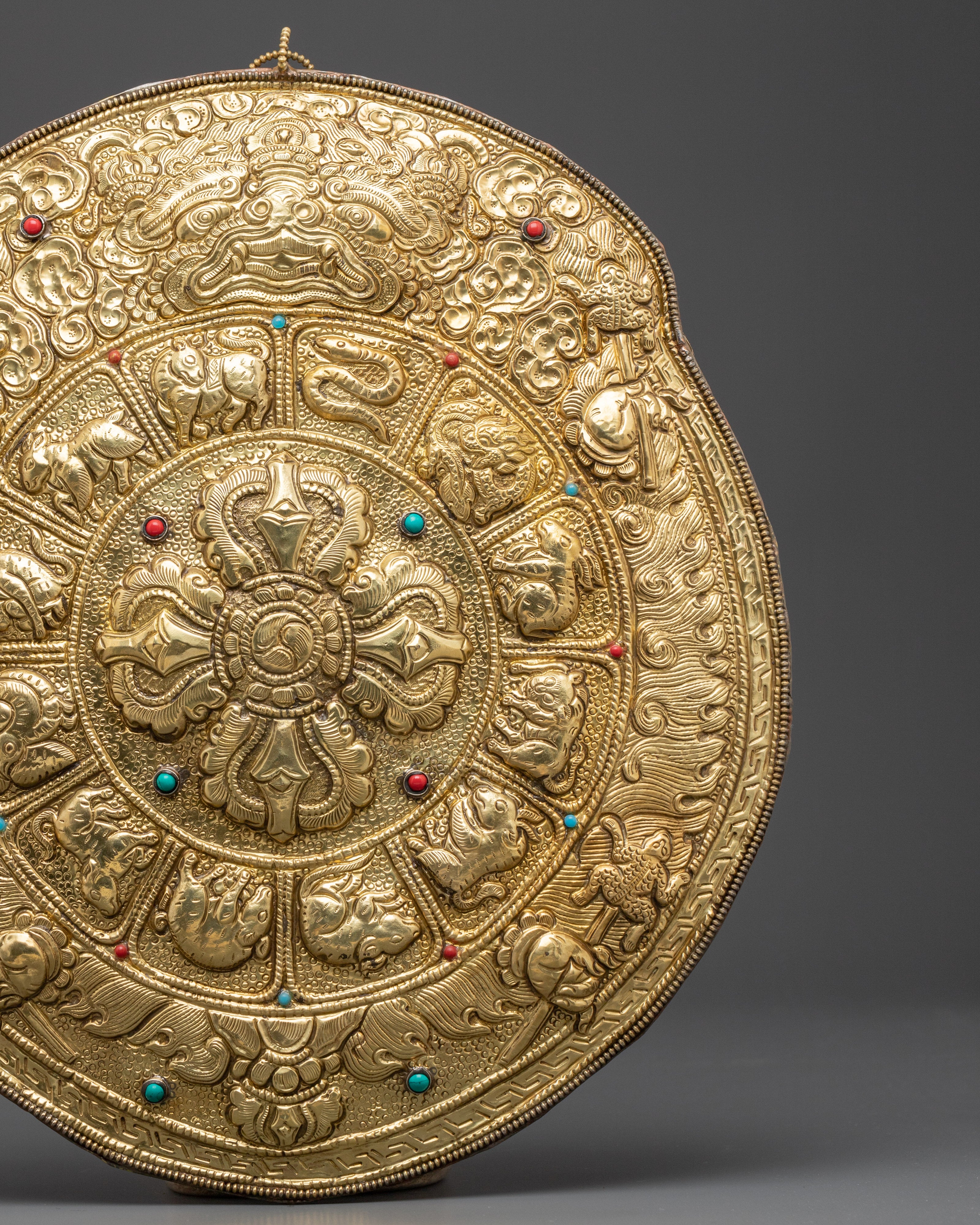 The Vajra Wall Hanging is masterfully created, with every detail carefully chosen to enhance its spiritual importance. The brass provides a strong basis, while the coral and turquoise inlays add brilliant color, representing knowledge and compassion. The combination of materials this sculpture works as both a spiritual tool and a lovely ornamental addition to your home. Placing this Vajra on your altar, temple, or meditation space can assist create a sense of serenity and safety.