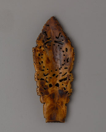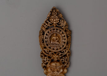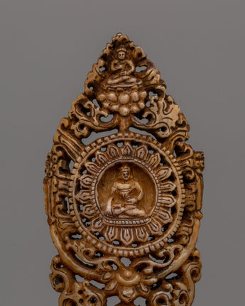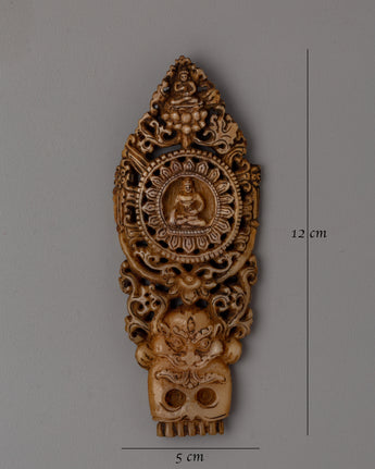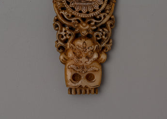 Enhance your sacred place with this exquisite Hand-Carved Buddha Wall Decor, crafted from responsibly sourced buffalo bone. This complex sculpture, measuring 12cm in height and 5cm in breadth, features skilled craftsmanship and a tranquil picture of the Buddha, which exudes serenity and awareness. The intricate carvings, which include complex patterns and significant motifs, represent the eternal traditions of Tibetan creativity, making it an essential addition to your home or meditation space.