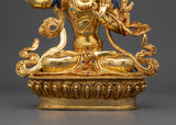 Handmade Tibetan Buddhism Manjushri | 24K Gold Gilded Statue of Wisdom and Knowledge